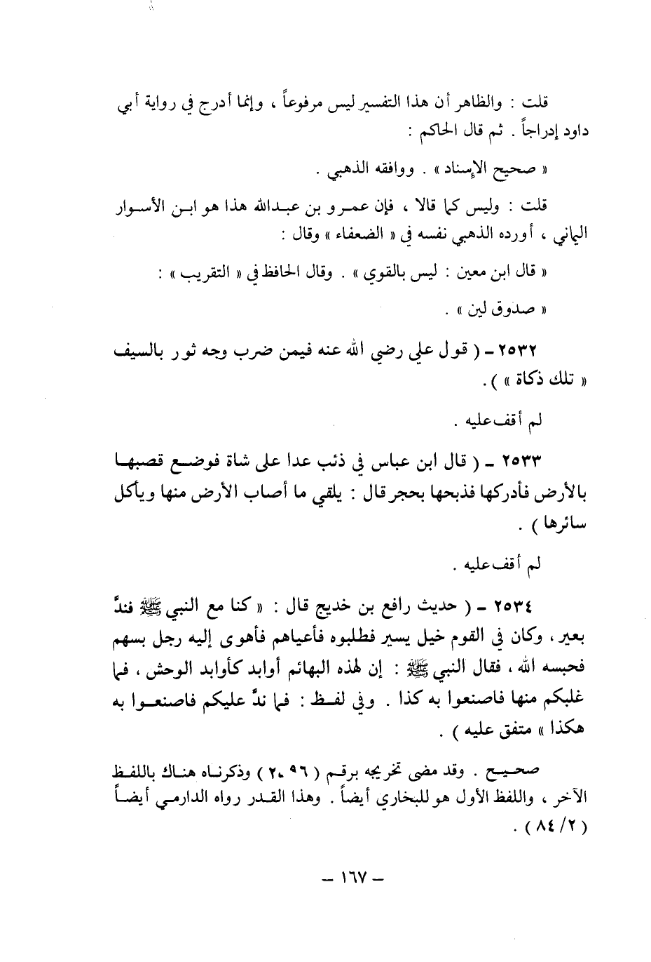 (2532) - (قول على رضى الله عنه: " فيمن ضرب وجه ثور بالسيف تلك ذكاة ".