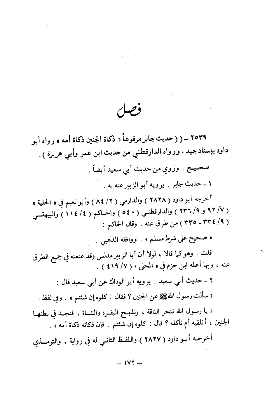 (2539) - (حديث جابر مرفوعا: " ذكاة الجنين ذكاة أمه " رواه أبو داود بإسناد جيد. ورواه الدارقطنى من حديث ابن عمر وأبى هريرة.