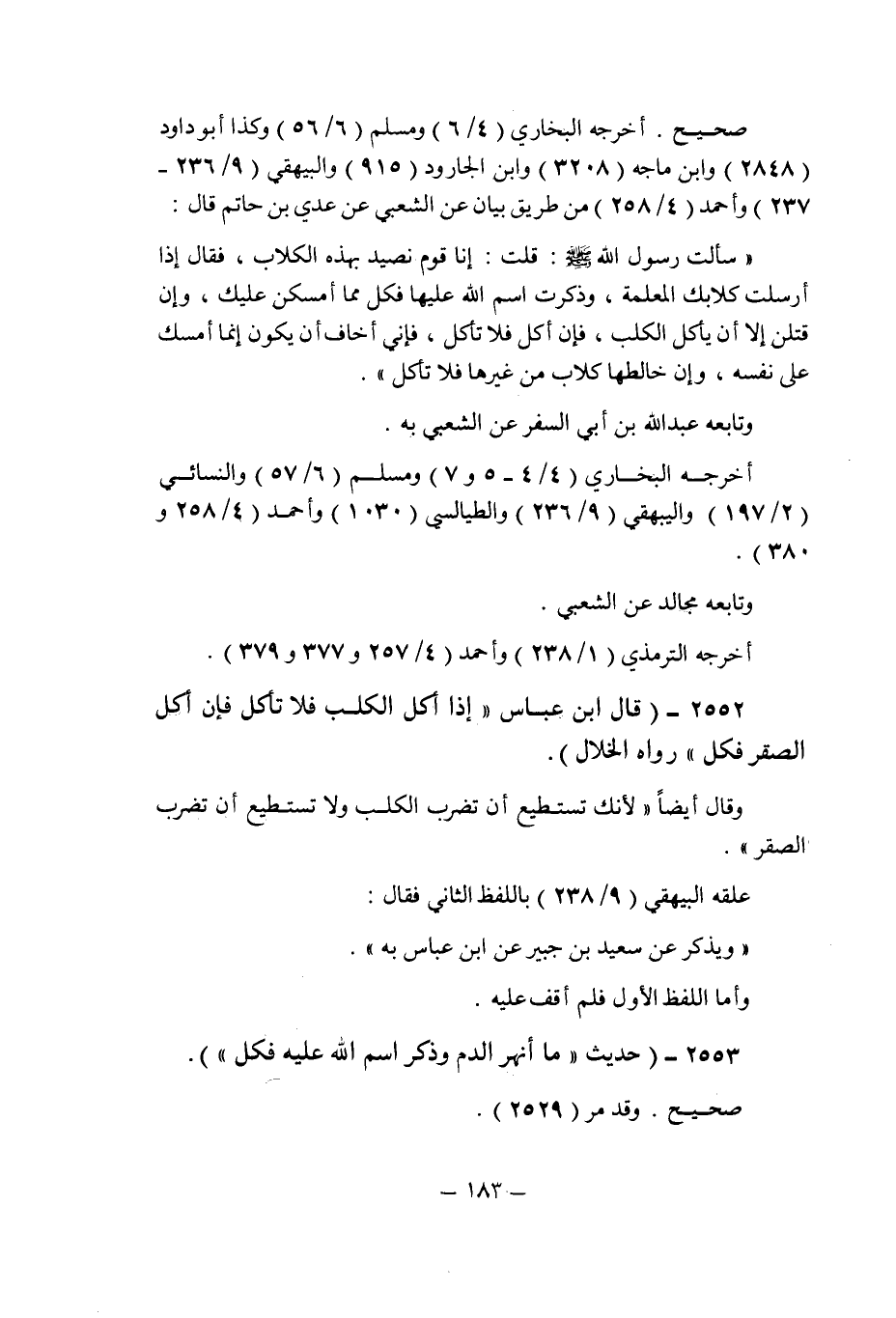 (2552) - (قال ابن عباس: " إذا أكل الكلب فلا تأكل فإن أكل الصقر فكل " رواه الخلال.