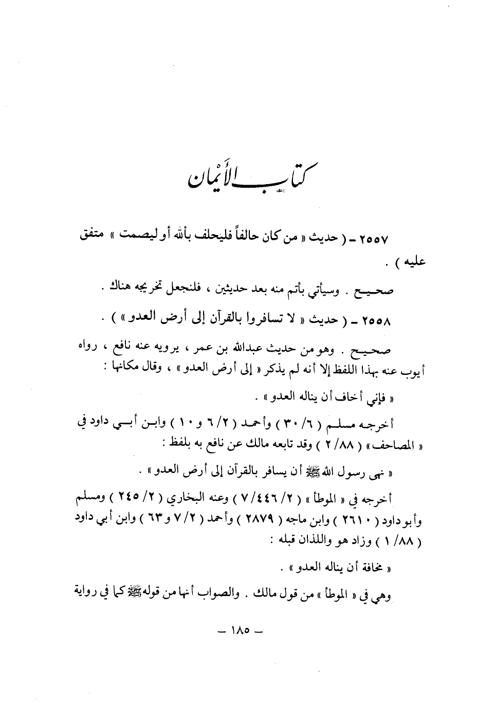 (2558) - (حديث: " لا تسافروا بالقرآن إلى أرض العدو ".