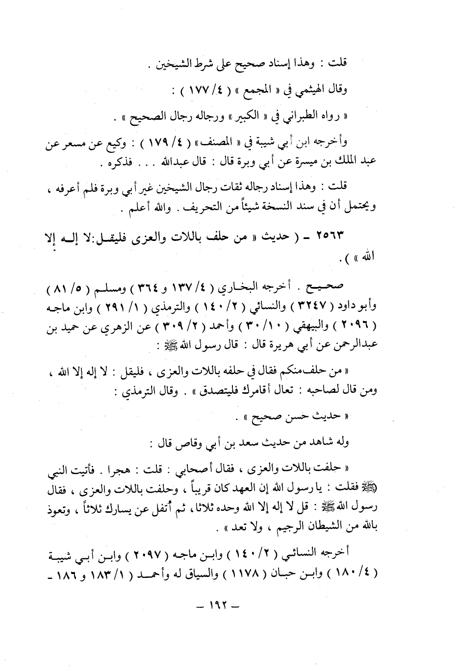 (2563) - (حديث: " من حلف باللات والعزى فليقل: لا إله إلا الله ".