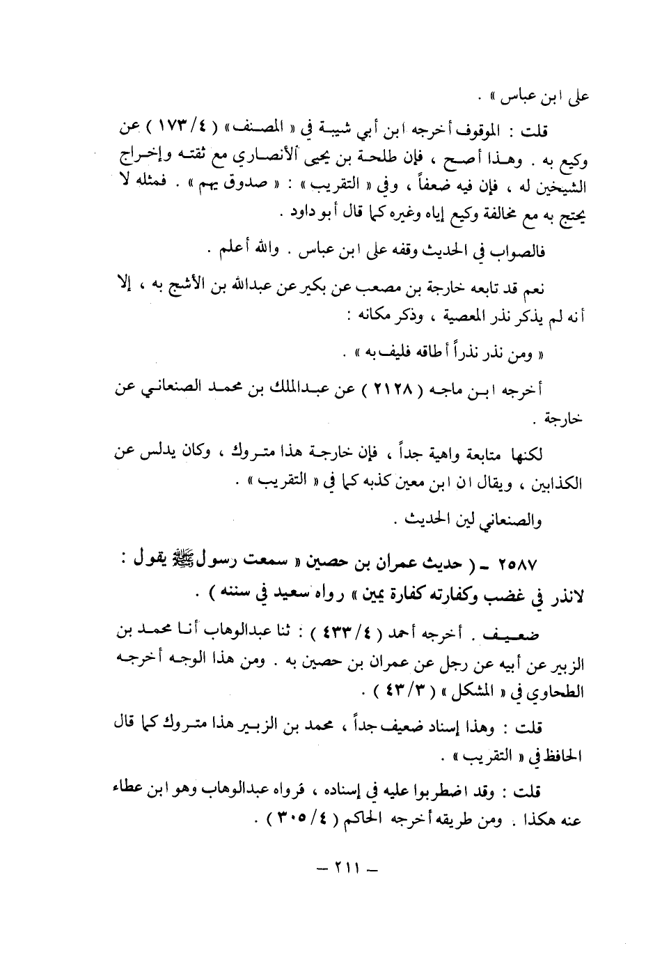 (2587) - (حديث عمران بن حصين: سمعت رسول الله صلى الله عليه وسلم يقول: " لا نذر فى غضب وكفارته كفارة يمين " رواه سعيد فى سننه.