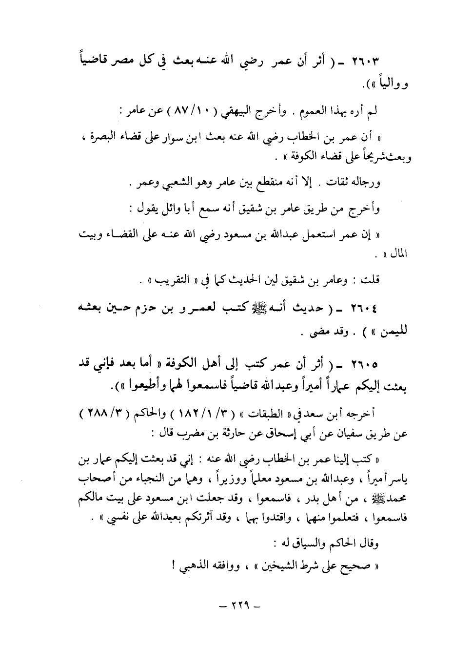 (2603) - (أثر: " أن عمر رضى الله عنه بعث فى كل مصر قاضيا وواليا ".