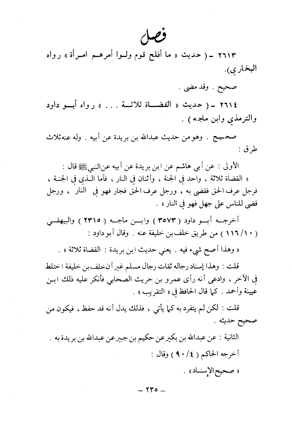 (2614) - (حديث: " القضاة ثلاثة ... " رواه أبو داود والترمذى وابن ماجه.