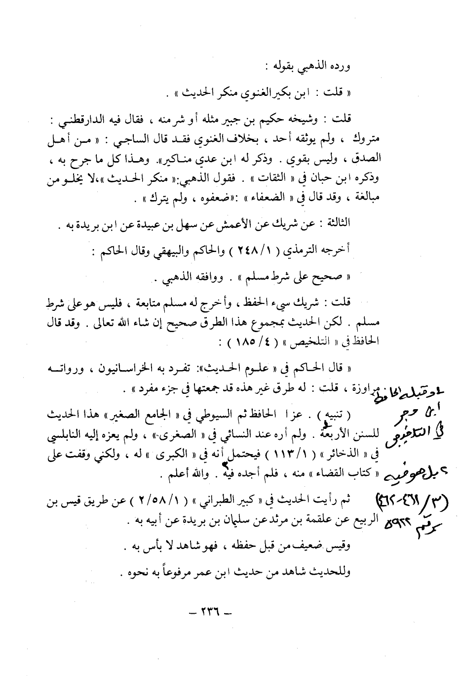 Q [1] {الحديث أخرجه النسائى فى " السنن الكبرى ": (3/461) وهو سابع حديث فى كتاب القضاء}