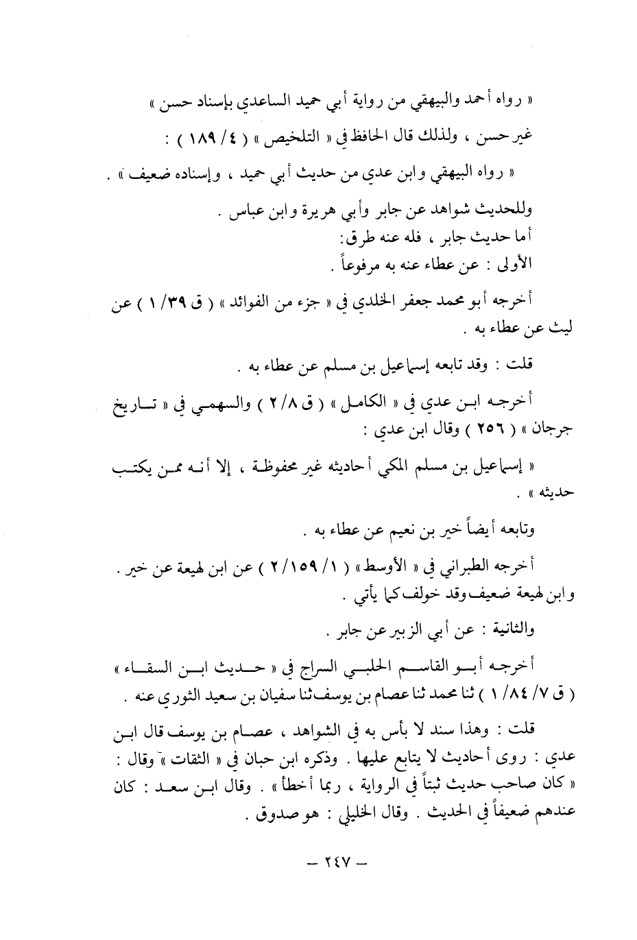 قلت: وهذا سند لا بأس به فى الشواهد , عصام بن يوسف قال ابن عدى: روى أحاديث لا يتابع عليها.