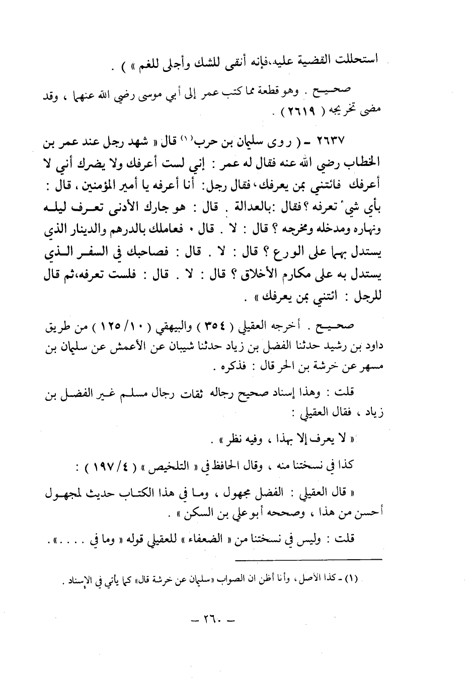أخرجه العقيلى (354) والبيهقى (10/125) من طريق داود بن رشيد حدثنا الفضل ابن زياد حدثنا شيبان عن الأعمش عن سليمان بن مسهر عن خرشة بن الحر قال: فذكره.
