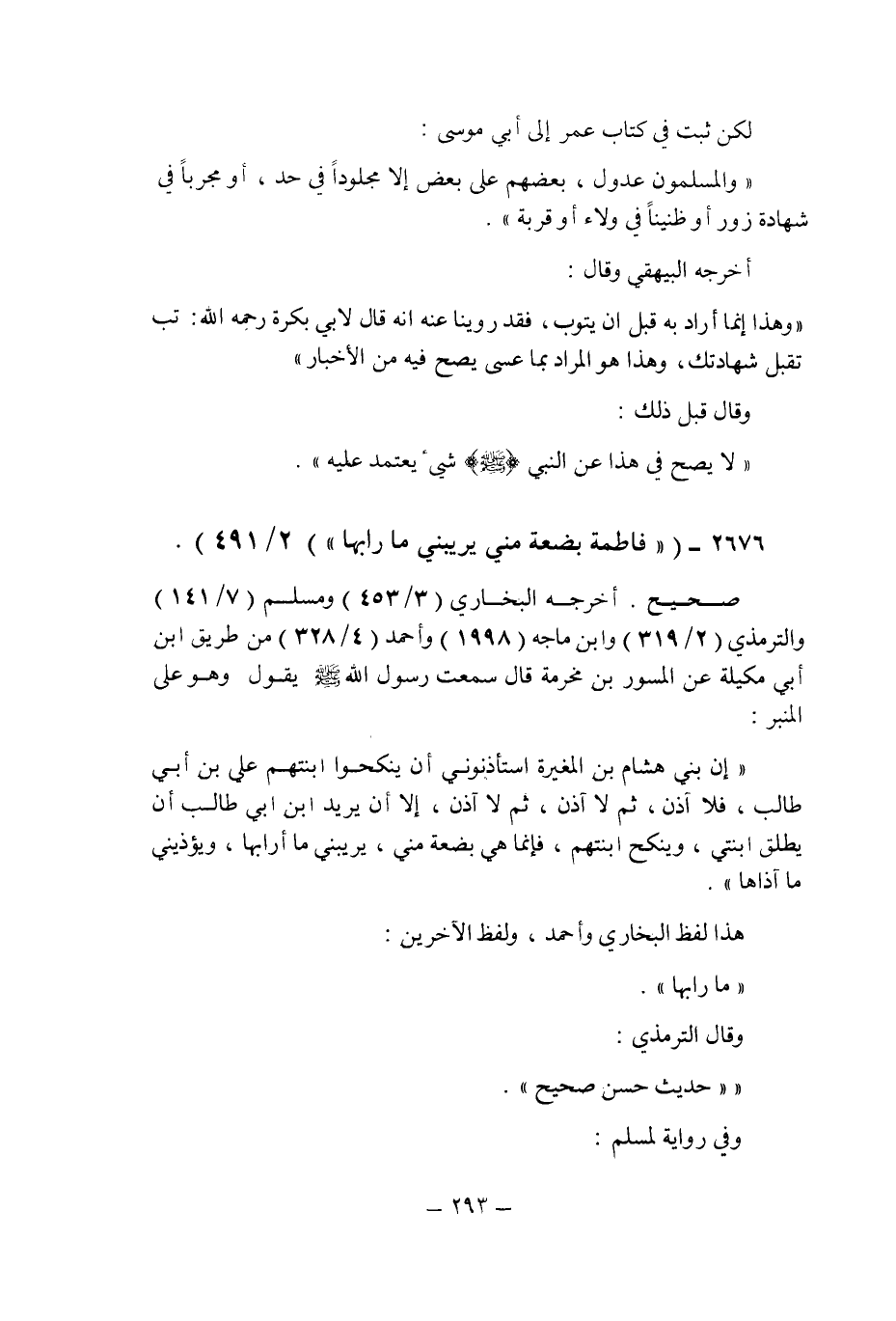 (2676) - (فاطمة بضعة منى يريبنى ما رابها " (2/491) .