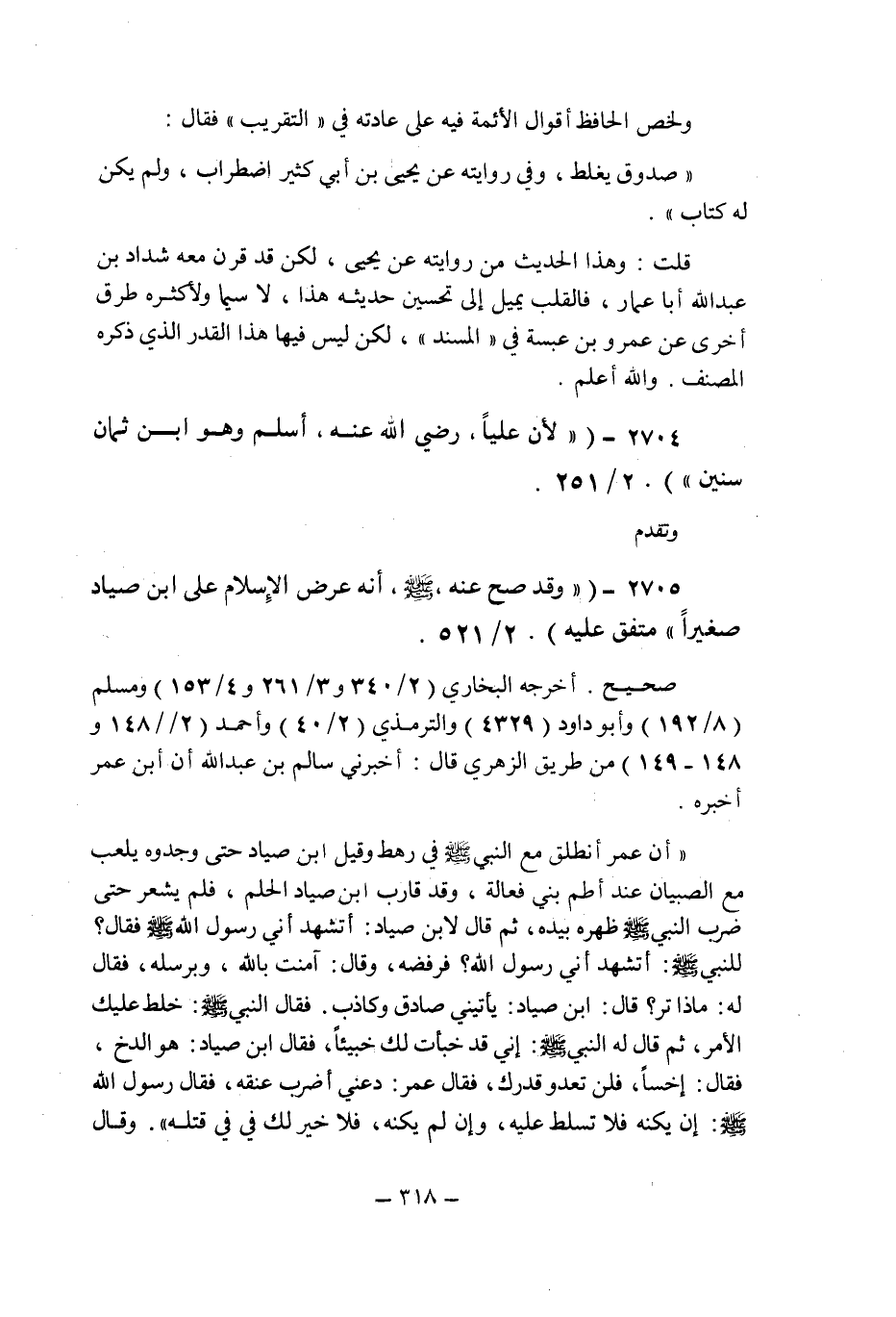 (2705) - (وقد صح عنه , صلى الله عليه وسلم: " أنه عرض الإسلام على ابن صياد صغيرا " متفق عليه (2/521) .