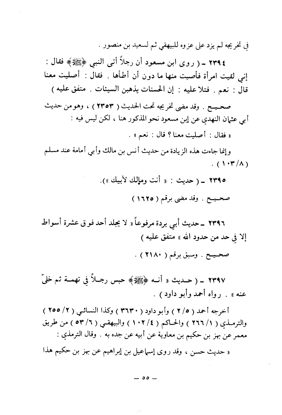 (2396) - (حديث أبى بردة مرفوعا: " لا يجلد أحد فوق عشرة أسواط إلا فى حد من حدود الله " متفق عليه.