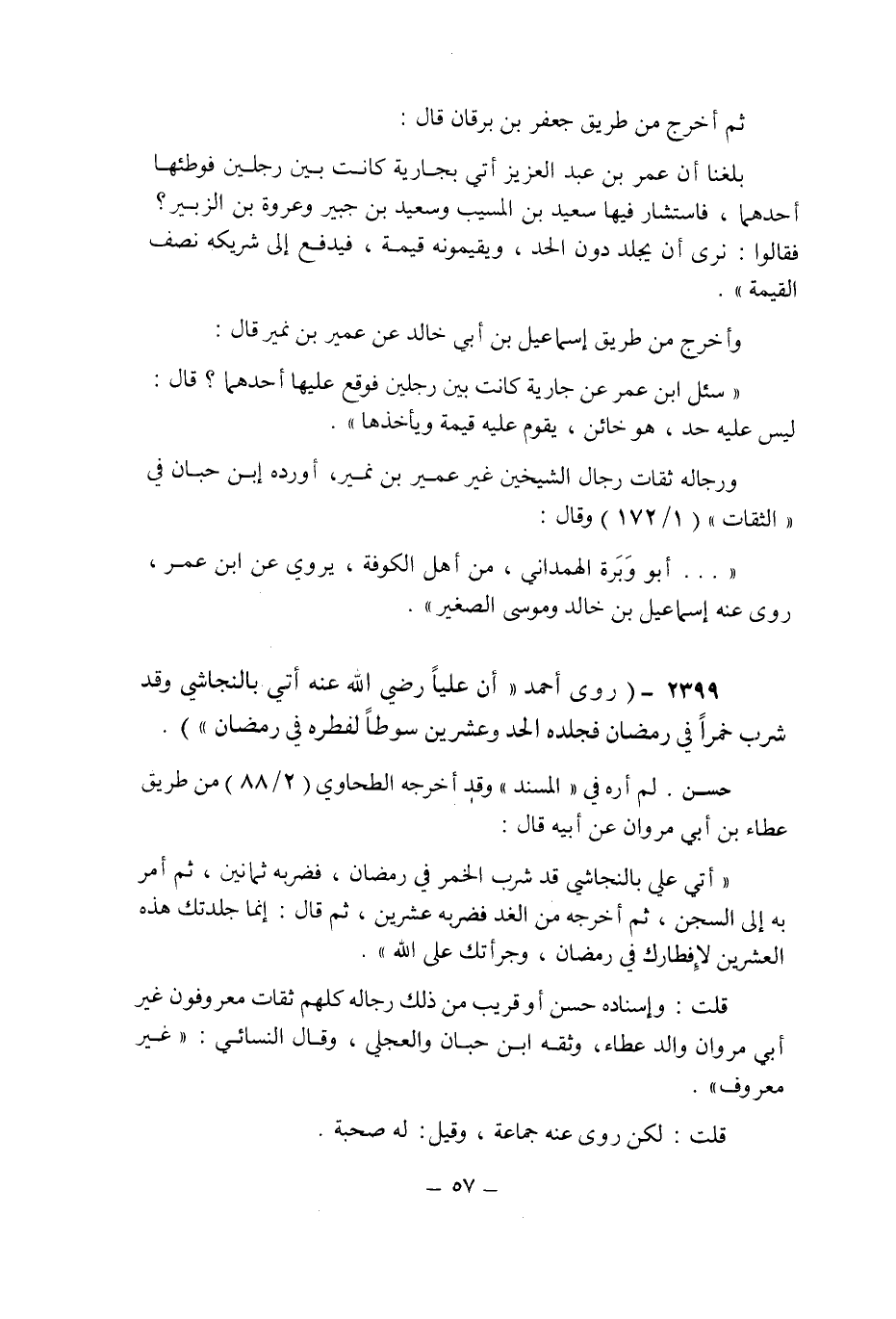 (2399) - (روى أحمد: " أن عليا رضى الله عنه أتى بالنجاشى وقد شرب خمرا فى رمضان فجلده الحد وعشرين سوطا لفطره فى رمضان ".