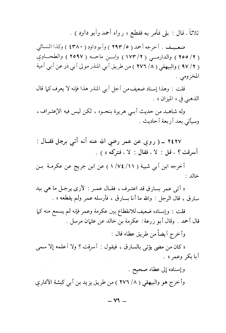 (2427) - (روى عن عمر رضى الله عنه: " أنه أتى برجل فقال: أسرقت؟ , قل: لا , فقال: لا , فتركه ".