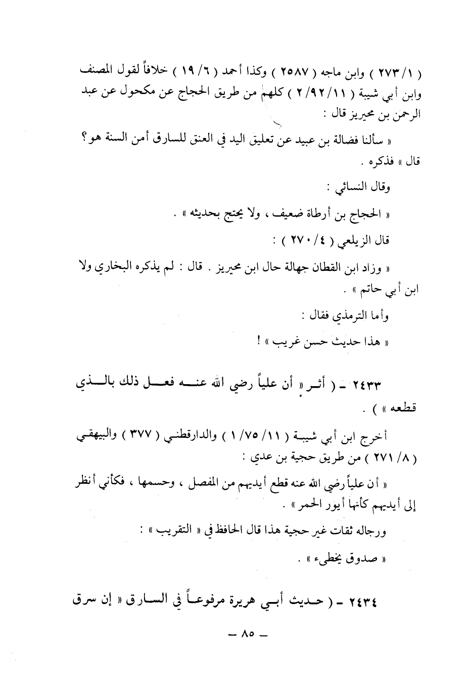 (2433) - (أثر: " أن عليا رضى الله عنه فعل ذلك بالذى قطعه ".