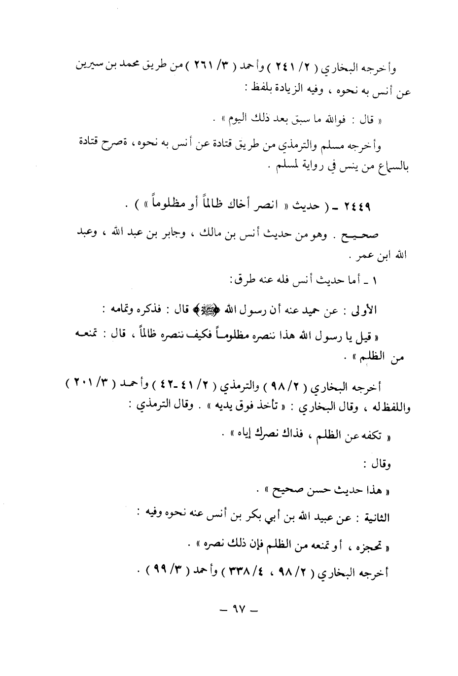 (2449) - (حديث: " انصر أخاك ظالما أو مظلوما ".