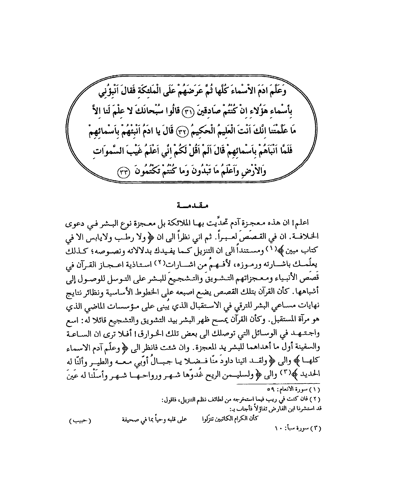 وَعَلَّمَ ادَمَ الاْسْماءَ كُلَّها ثُمَّ عَرَضَهُمْ عَلَى الْمَلئِكَةِ فَقالَ اََنْبِؤُنِي