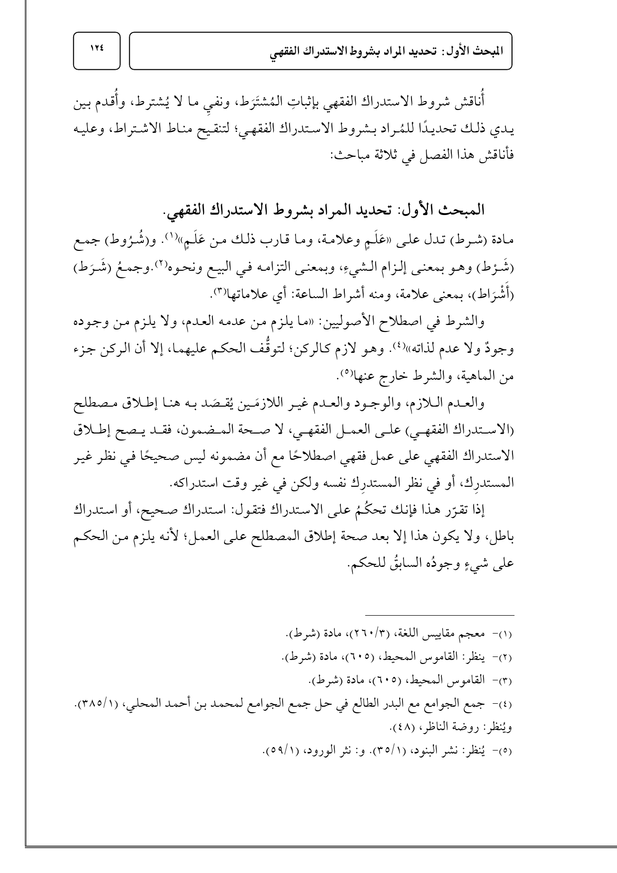 المبحث الأول: تحديد المراد بشروط الاستدراك الفقهي.