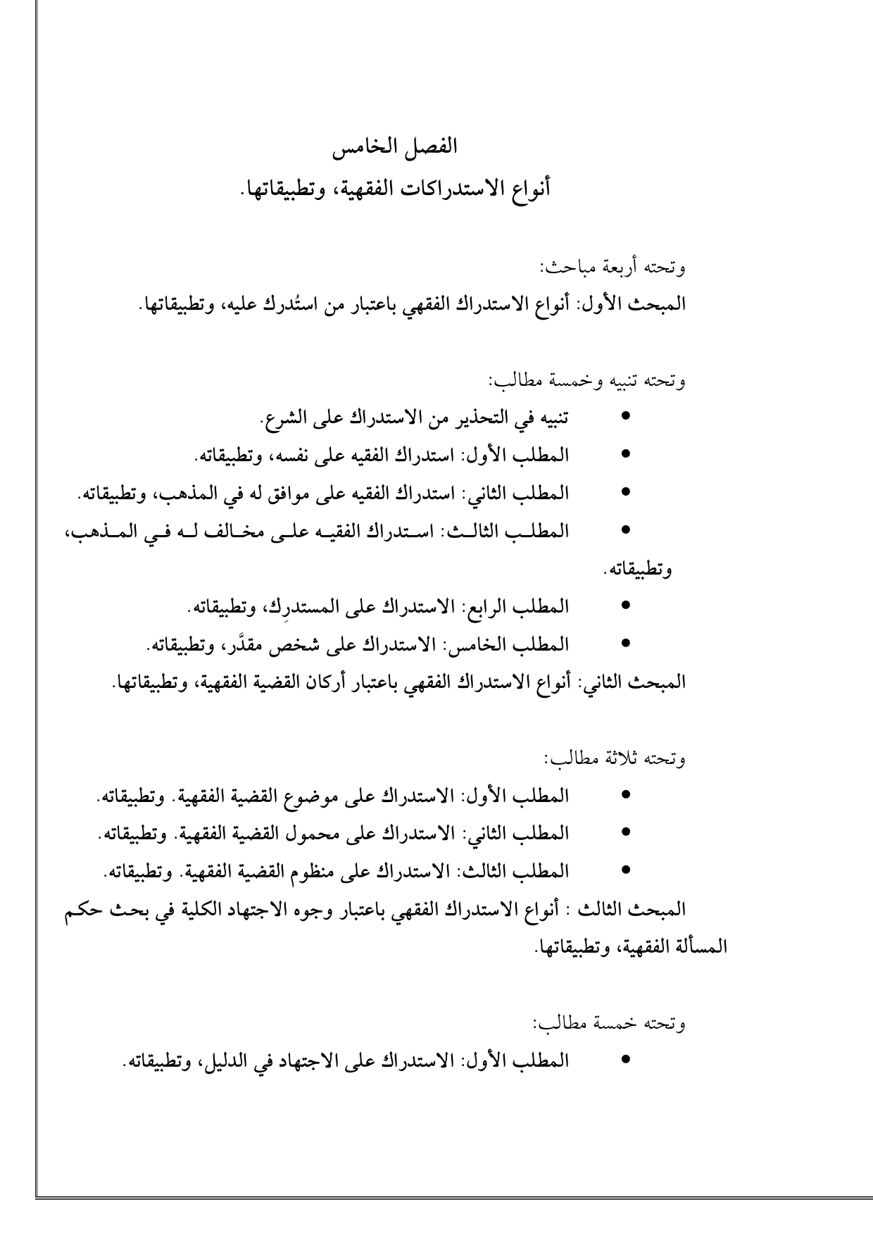 - المطلب الثالث: الاستدراك على منظوم القضية الفقهية. وتطبيقاته.
