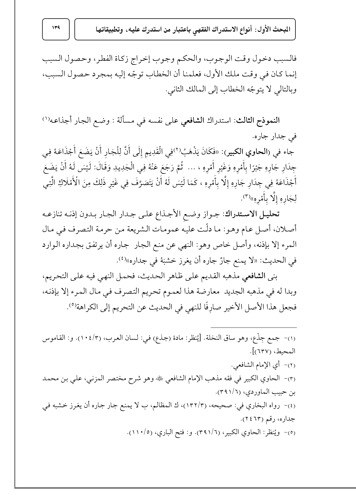 (¬5) ويُنظر: الحاوي الكبير، (6/ 391). و: فتح الباري، (5/ 110).