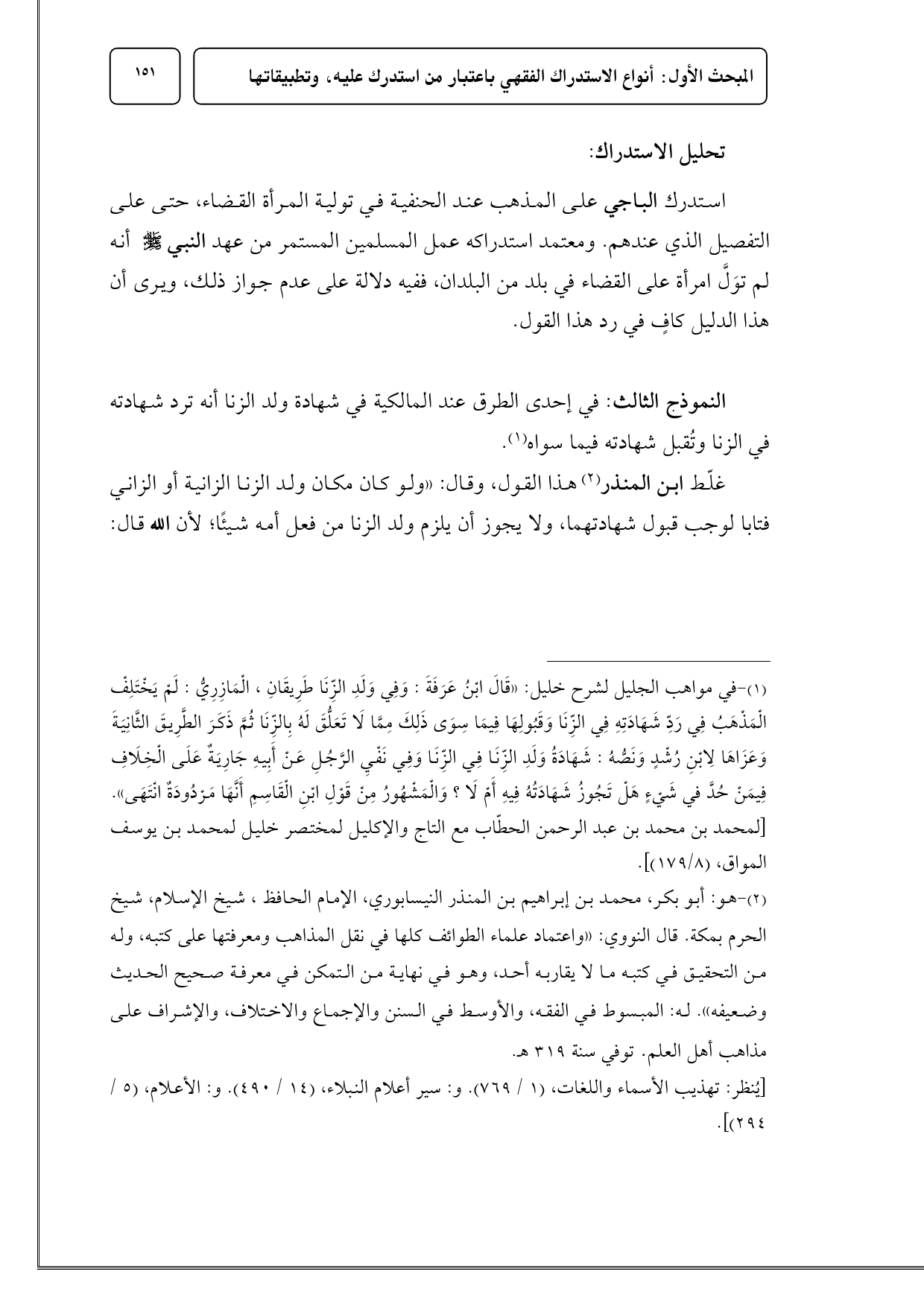 (¬2) هو: أبو بكر، محمد بن إبراهيم بن المنذر النيسابوري، الإمام الحافظ، شيخ الإسلام، شيخ الحرم بمكة. قال النووي: «واعتماد علماء الطوائف كلها في نقل المذاهب ومعرفتها على كتبه، وله من التحقيق في كتبه ما لا يقاربه أحد، وهو في نهاية من التمكن في معرفة صحيح الحديث وضعيفه». له: المبسوط في الفقه، والأوسط في السنن والإجماع والاختلاف، والإشراف على مذاهب أهل العلم. توفي سنة 319 هـ.