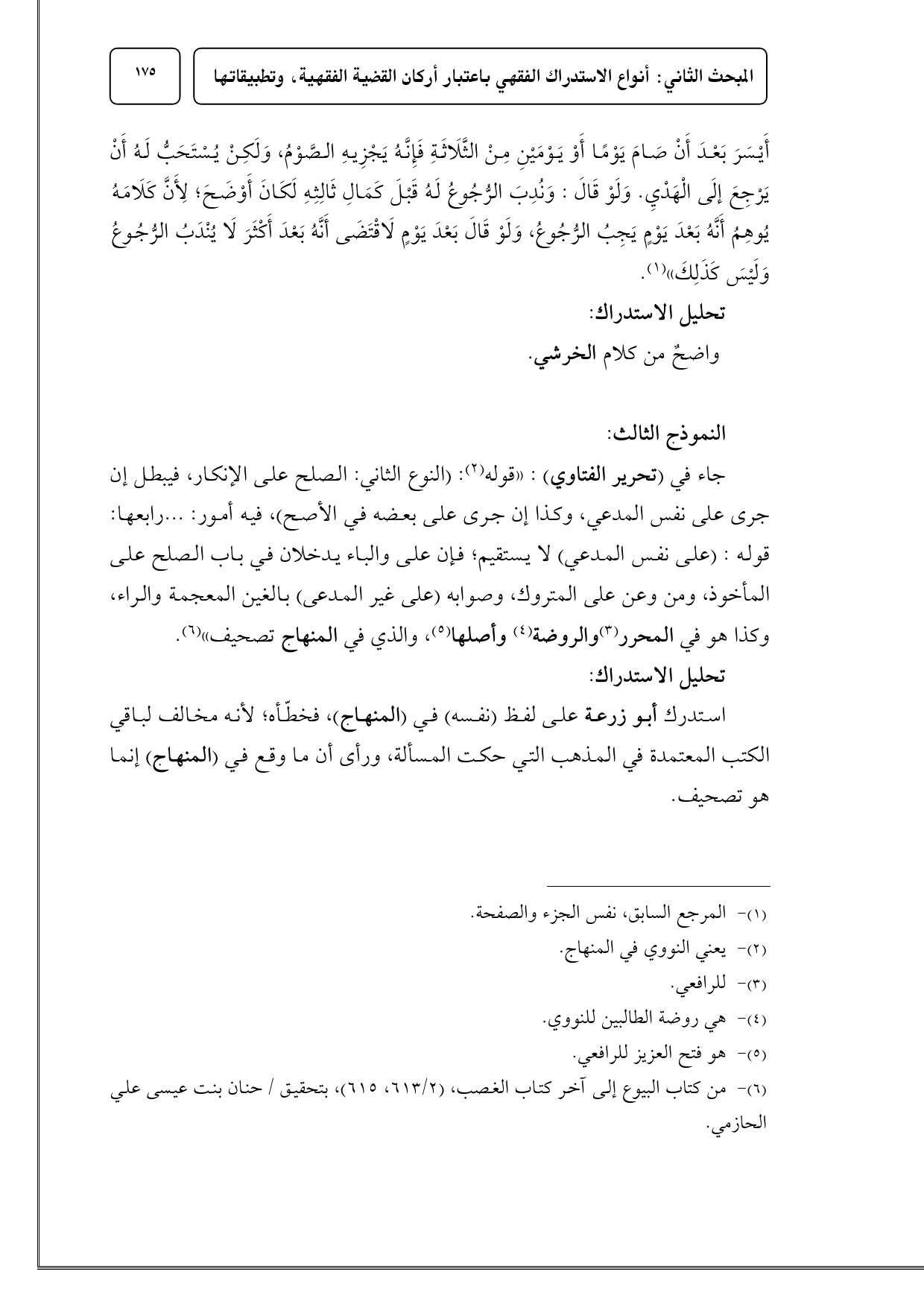 استدرك أبو زرعة على لفظ (نفسه) في (المنهاج)، فخطّأه؛ لأنه مخالف لباقي الكتب المعتمدة في المذهب التي حكت المسألة، ورأى أن ما وقع في (المنهاج) إنما هو تصحيف.
