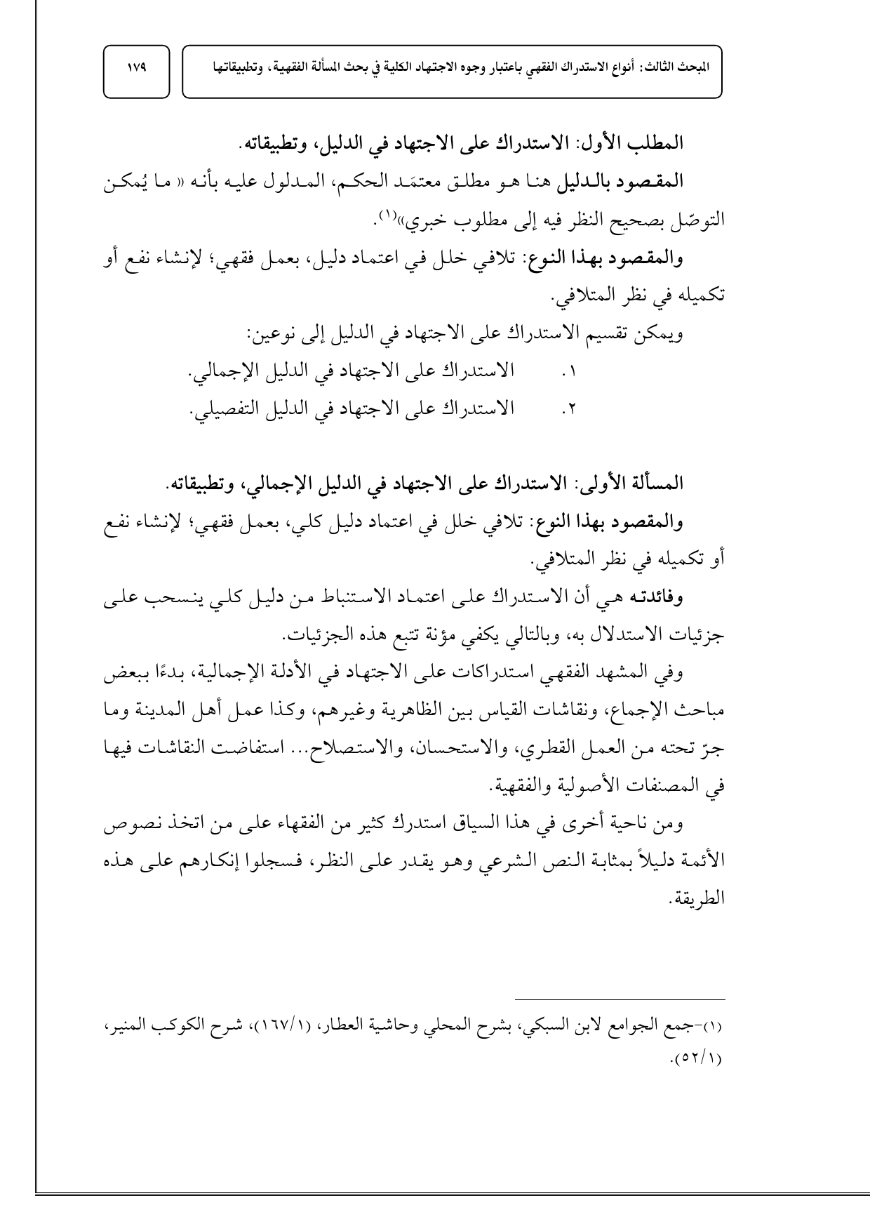 1 - الاستدراك على الاجتهاد في الدليل الإجمالي.