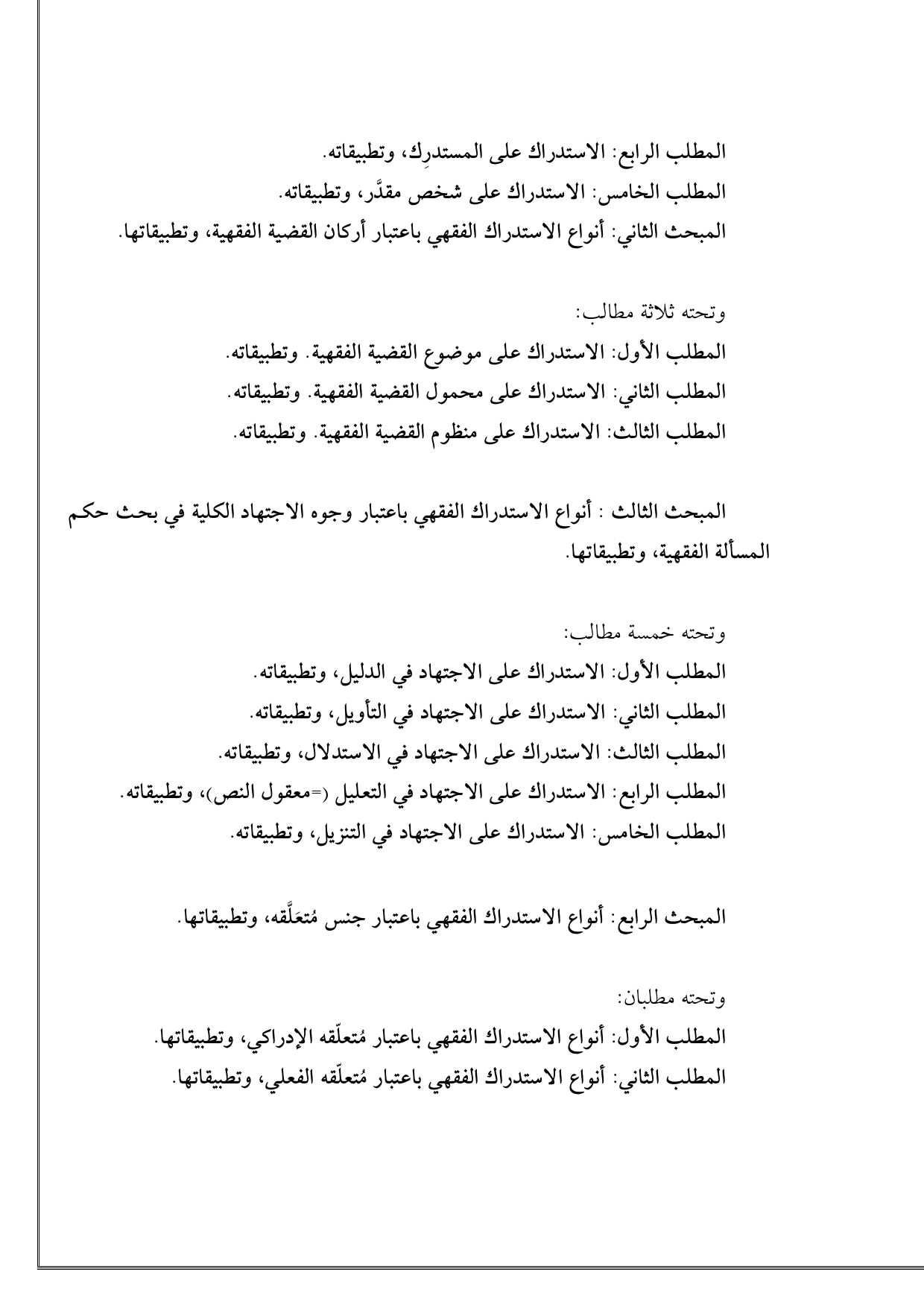 المطلب الثالث: الاستدراك على منظوم القضية الفقهية. وتطبيقاته.