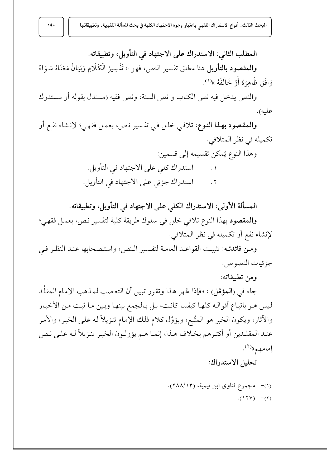 المسألة الأولى: الاستدراك الكلي على الاجتهاد في التأويل، وتطبيقاته.