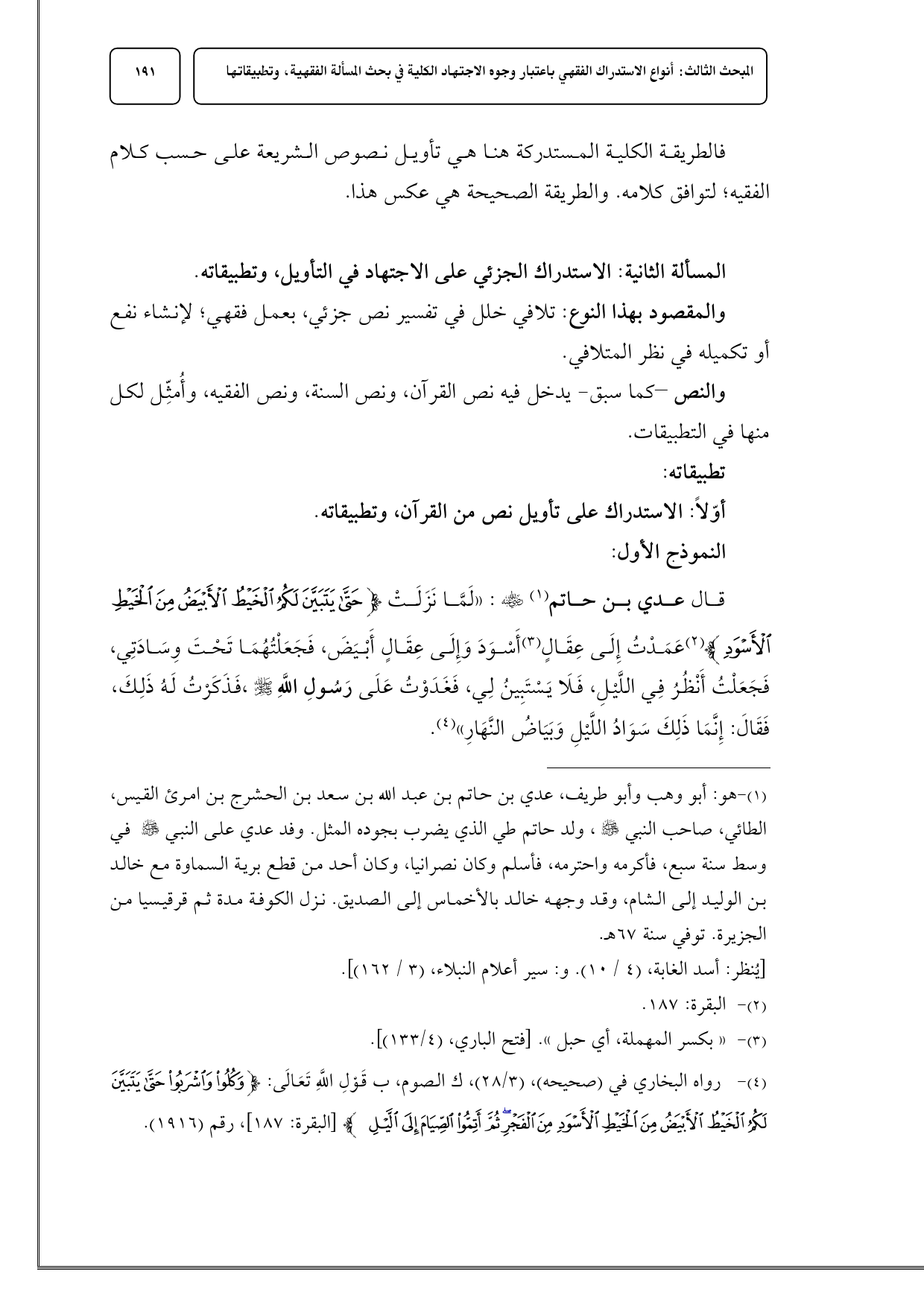 أوّلاً: الاستدراك على تأويل نص من القرآن، وتطبيقاته.