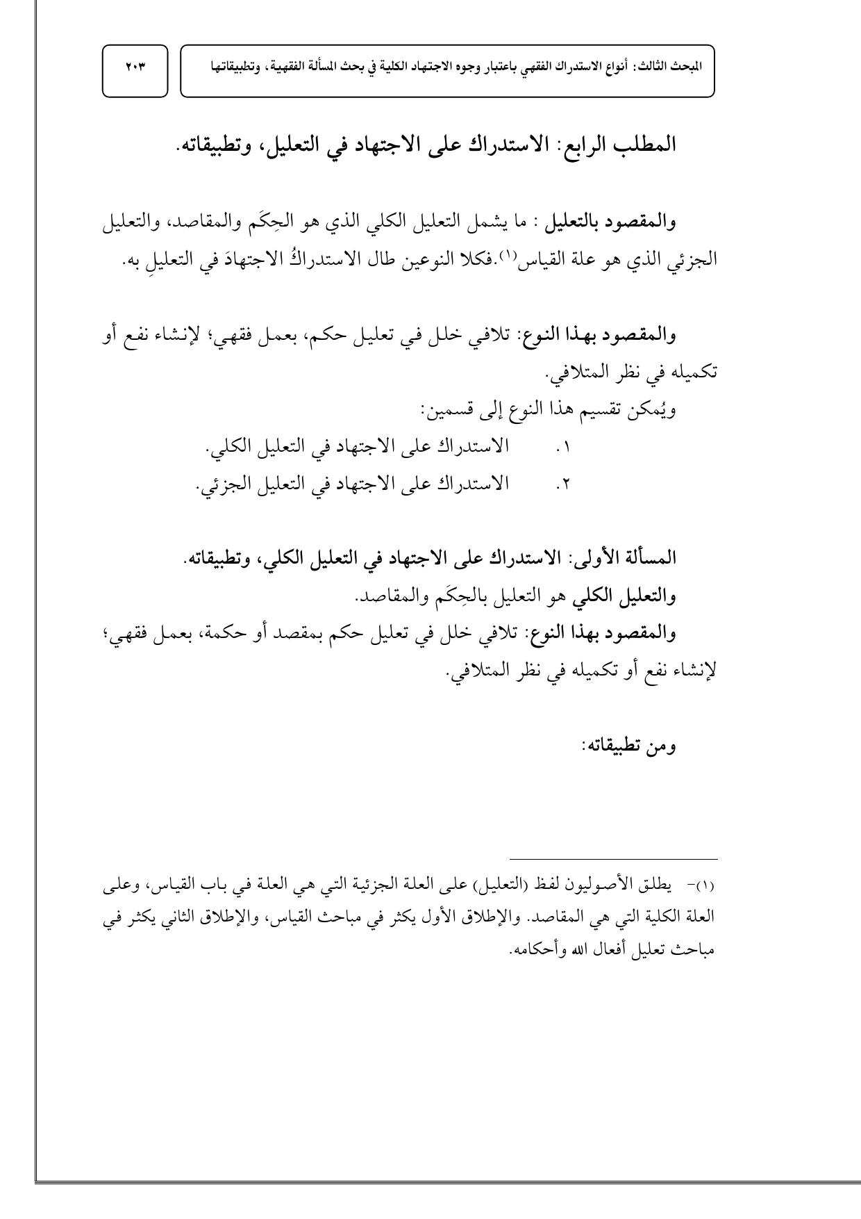 1 - الاستدراك على الاجتهاد في التعليل الكلي.