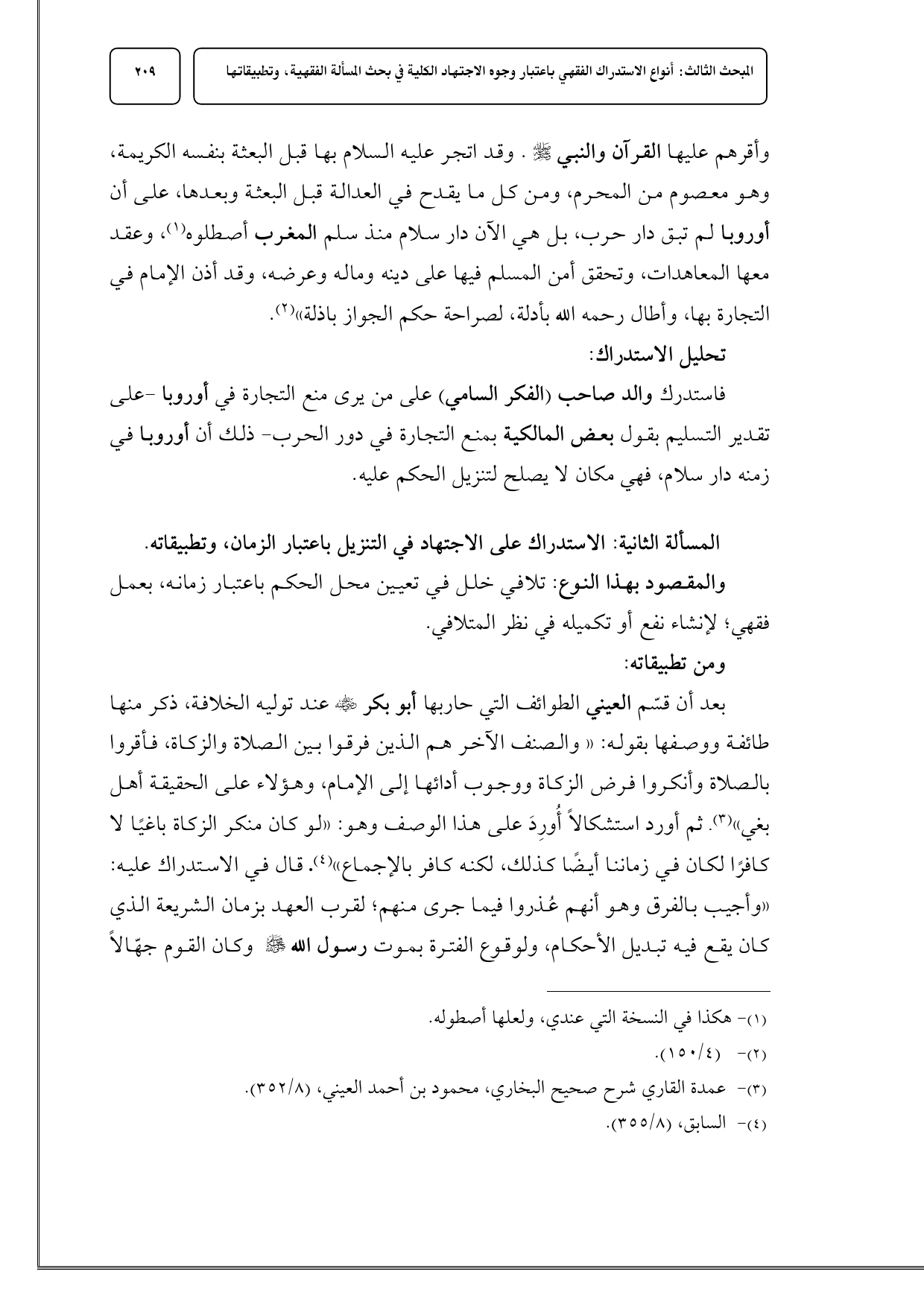 المسألة الثانية: الاستدراك على الاجتهاد في التنزيل باعتبار الزمان، وتطبيقاته.