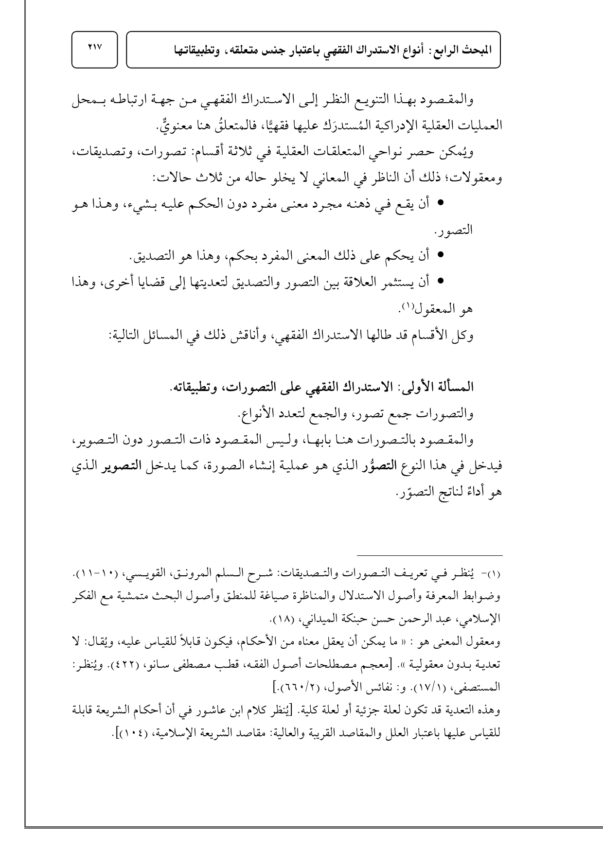المسألة الأولى: الاستدراك الفقهي على التصورات، وتطبيقاته.