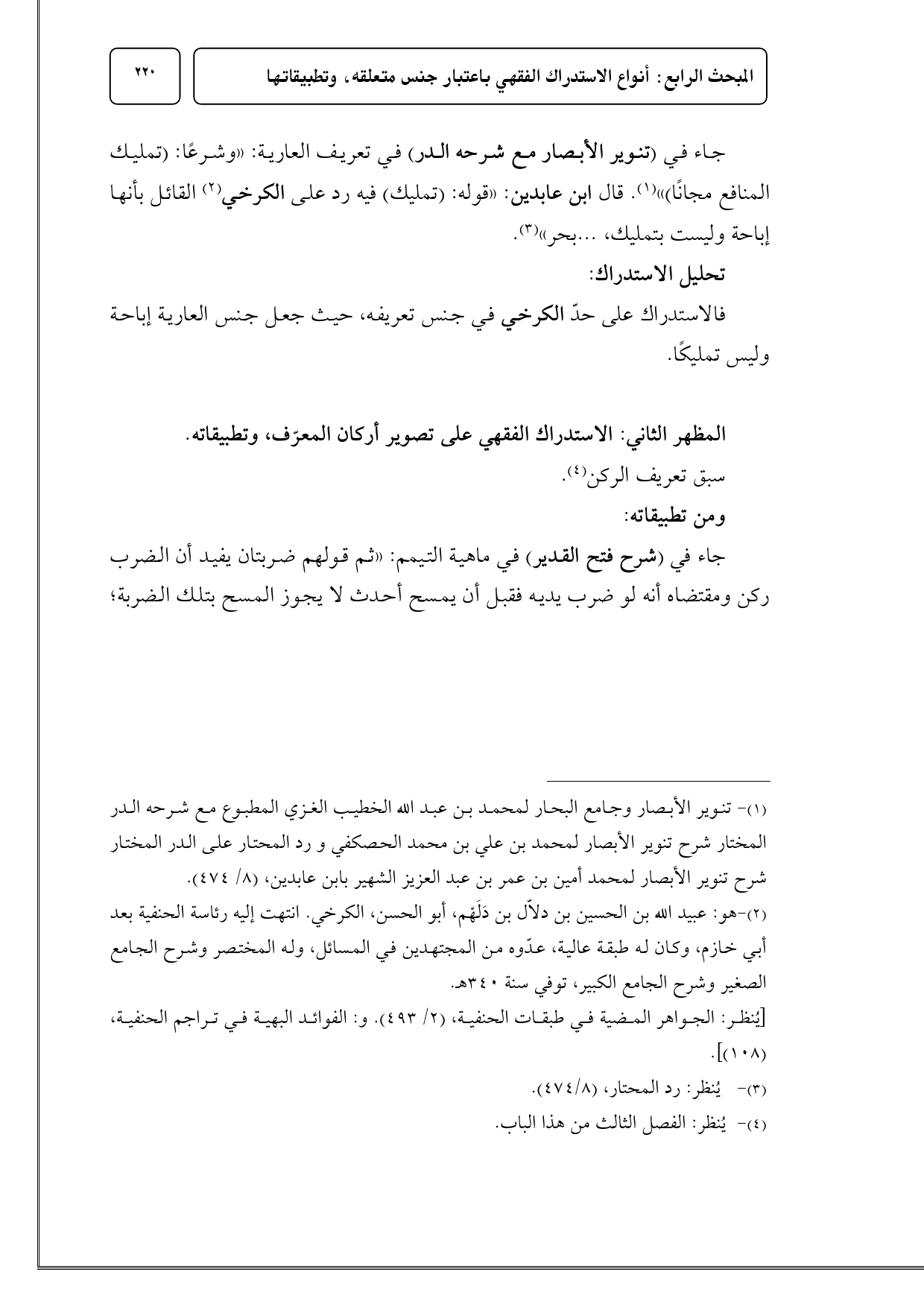 المظهر الثاني: الاستدراك الفقهي على تصوير أركان المعرّف، وتطبيقاته.