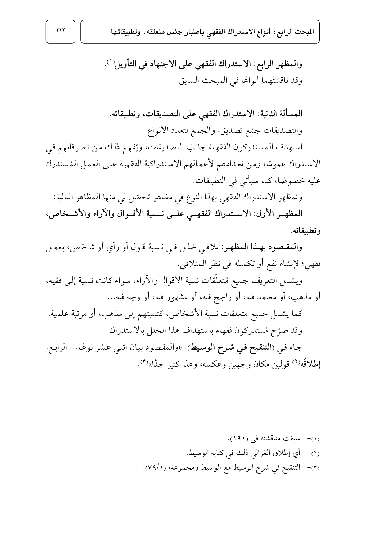 وتمظهر الاستدراك الفقهي بهذا النوع في مظاهر تحصّل لي منها المظاهر التالية: