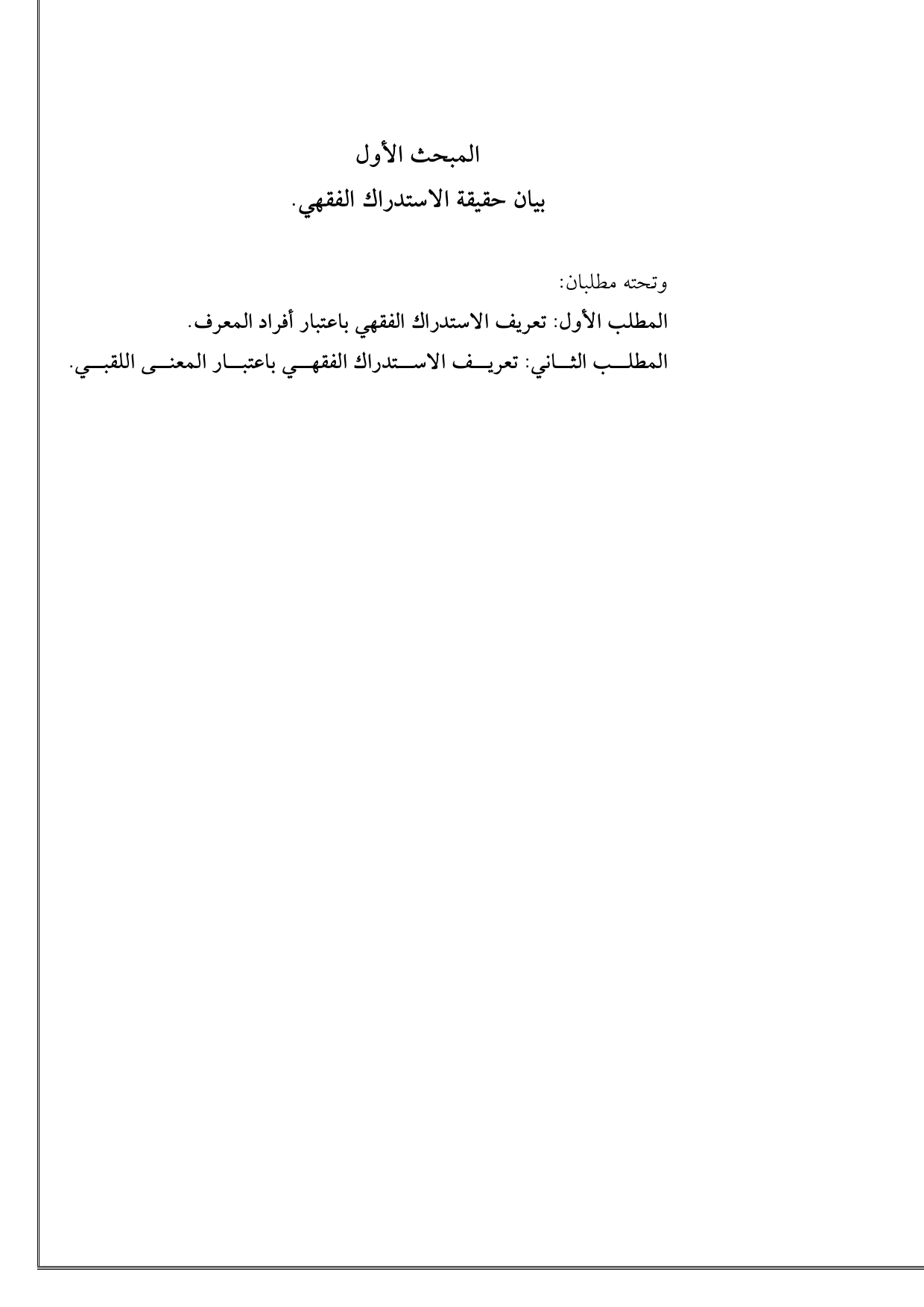 المطلب الأول: تعريف الاستدراك الفقهي باعتبار أفراد المعرف.