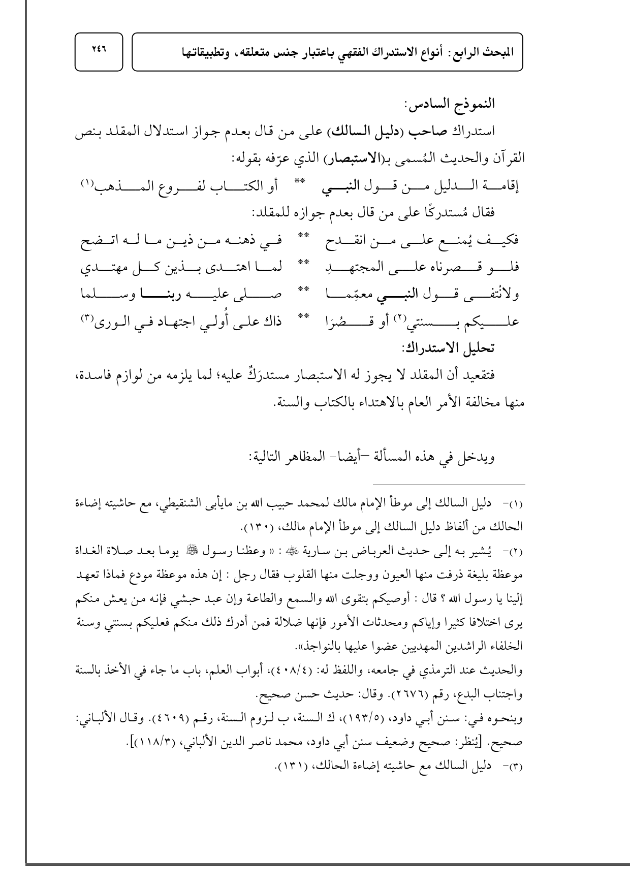 استدراك صاحب (دليل السالك) على من قال بعدم جواز استدلال المقلد بنص القرآن والحديث المُسمى بـ (الاستبصار) الذي عرّفه بقوله: