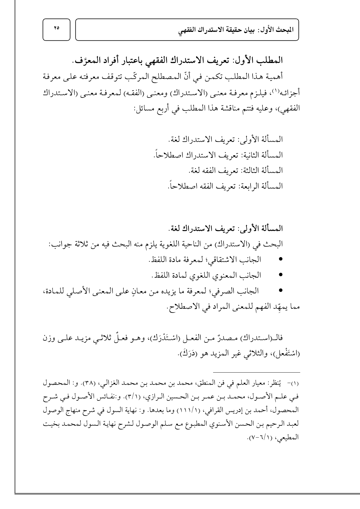 المطلب الأول: تعريف الاستدراك الفقهي باعتبار أفراد المعرَّف.