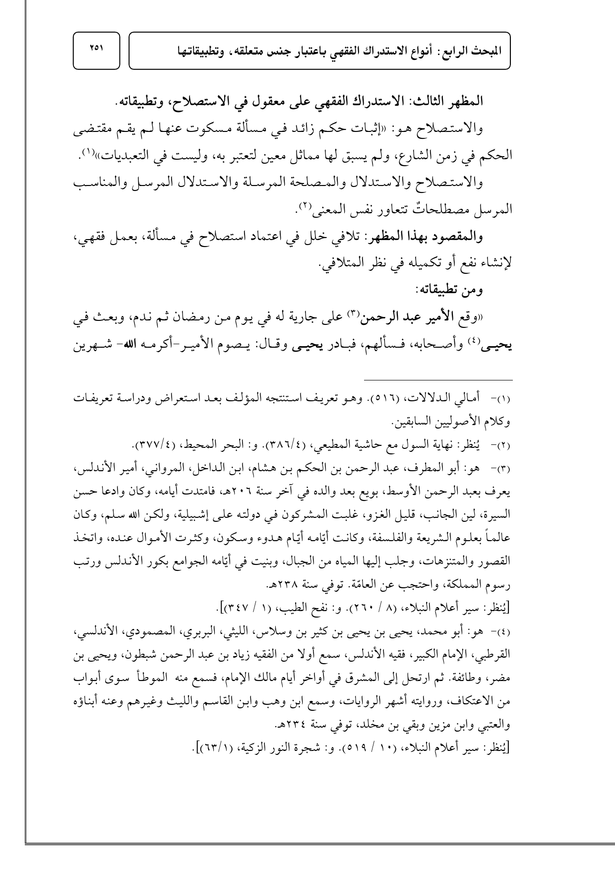 المظهر الثالث: الاستدراك الفقهي على معقول في الاستصلاح، وتطبيقاته.
