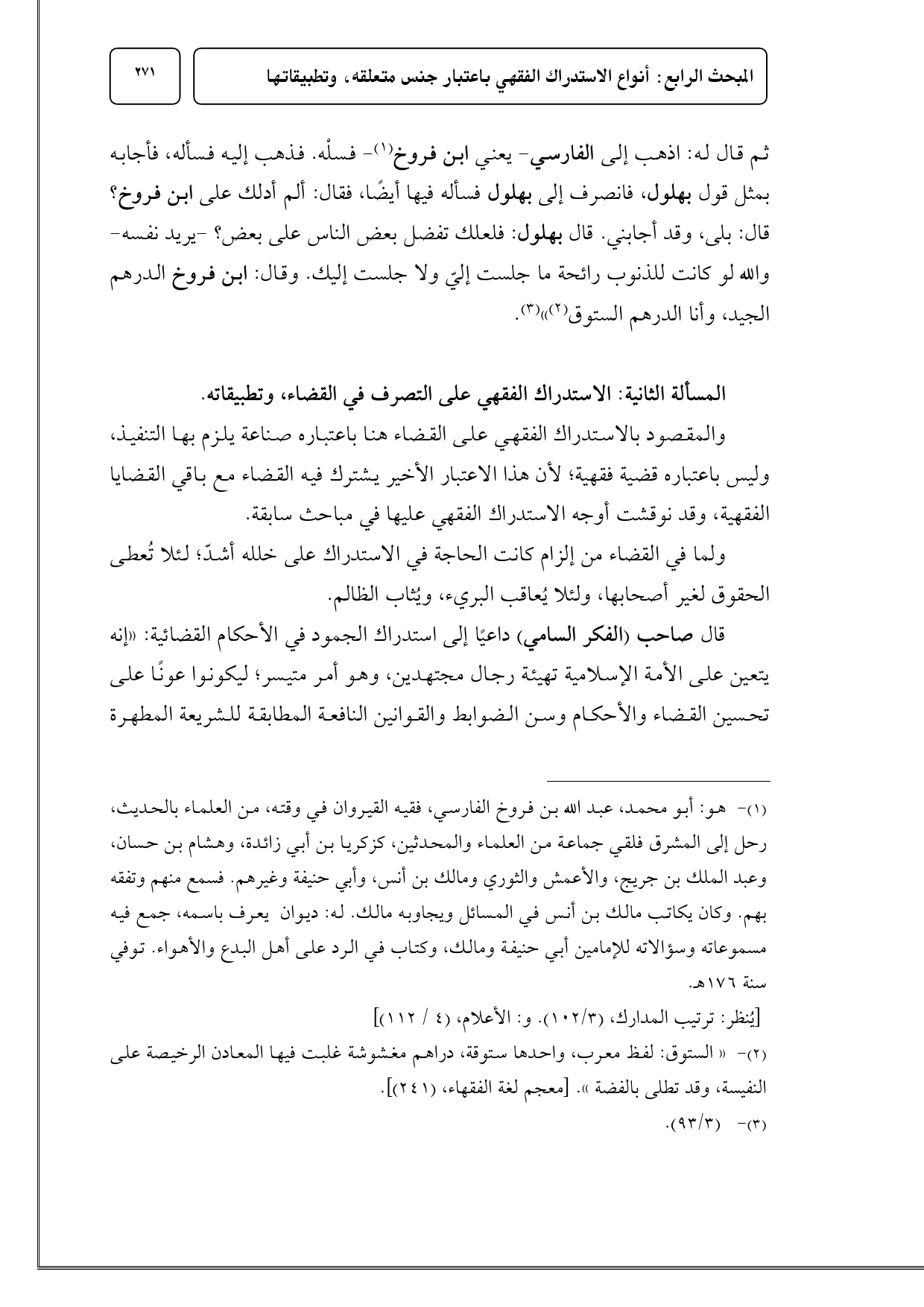 المسألة الثانية: الاستدراك الفقهي على التصرف في القضاء، وتطبيقاته.