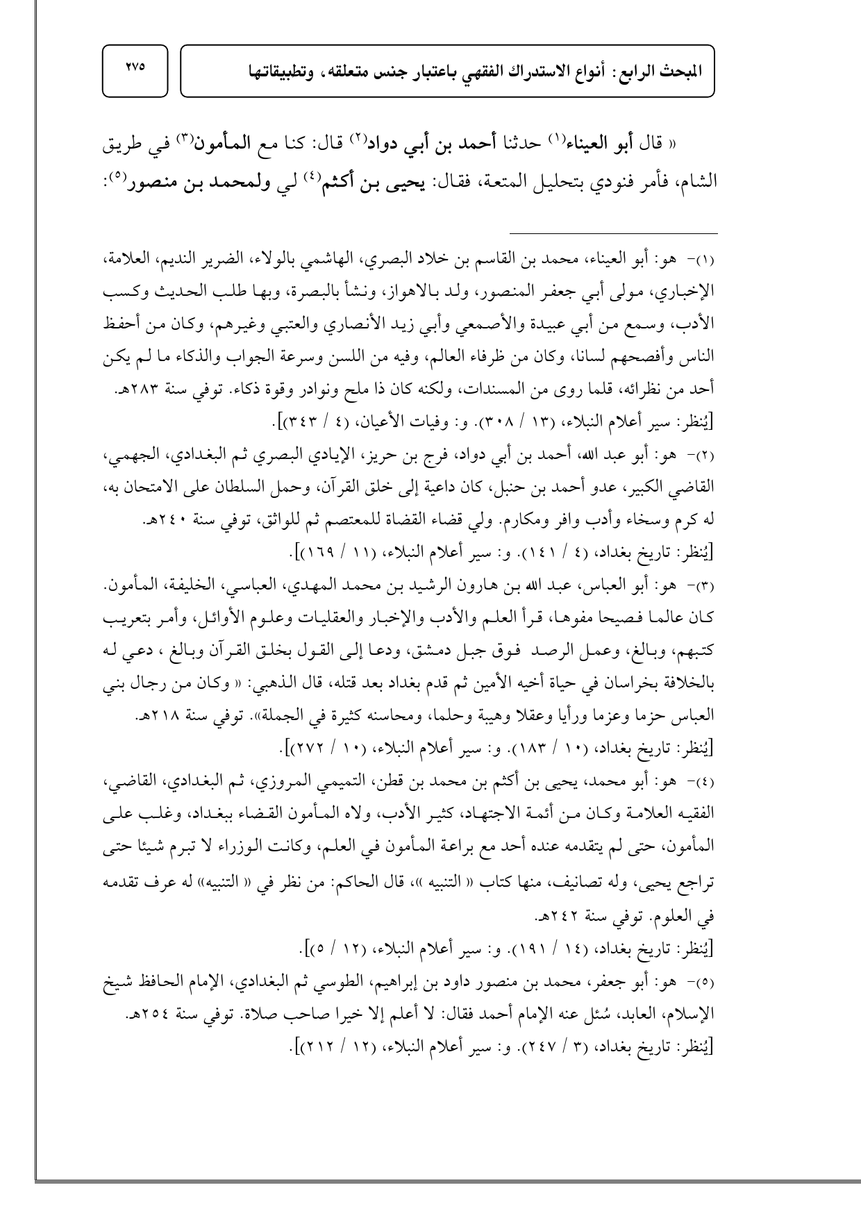 في طريق الشام، فأمر فنودي بتحليل المتعة، فقال: يحيى بن أكثم (¬4) لي ولمحمد بن منصور (¬5):