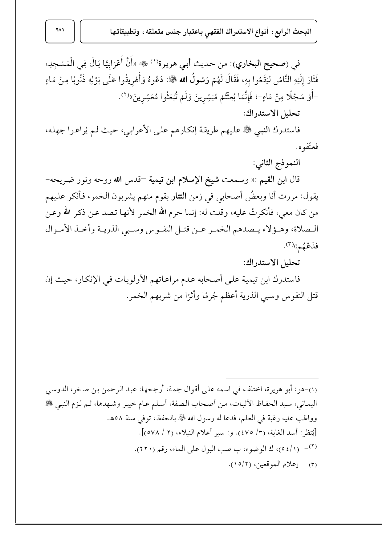 فاستدرك ابن تيمية على أصحابه عدم مراعاتهم الأولويات في الإنكار، حيث إن قتل النفوس وسبي الذرية أعظم جُرمًا وأثرًا من شربهم الخمر.