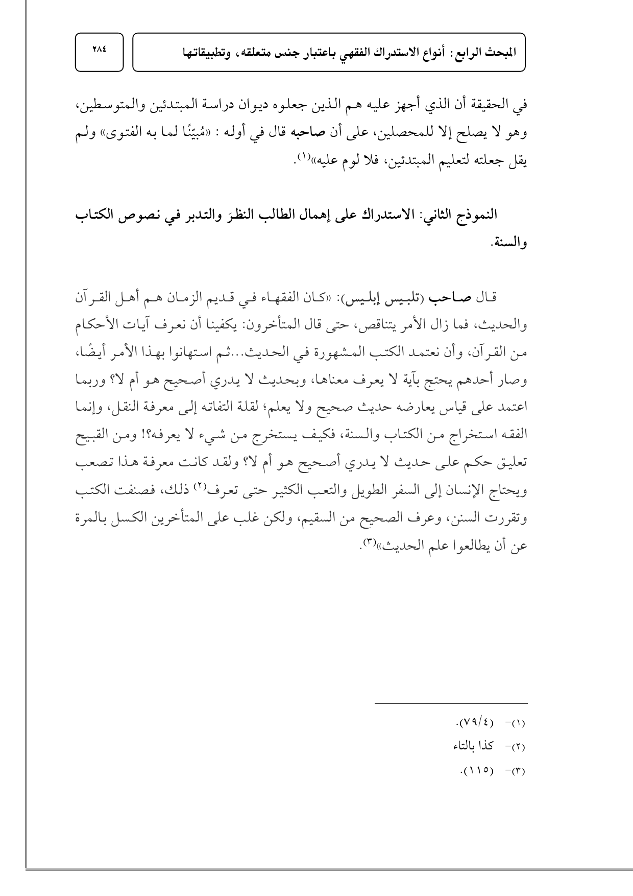 النموذج الثاني: الاستدراك على إهمال الطالب النظرَ والتدبر في نصوص الكتاب والسنة.