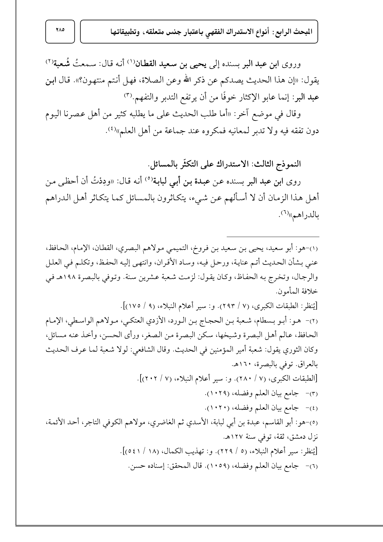 النموذج الثالث: الاستدراك على التكثّر بالمسائل.