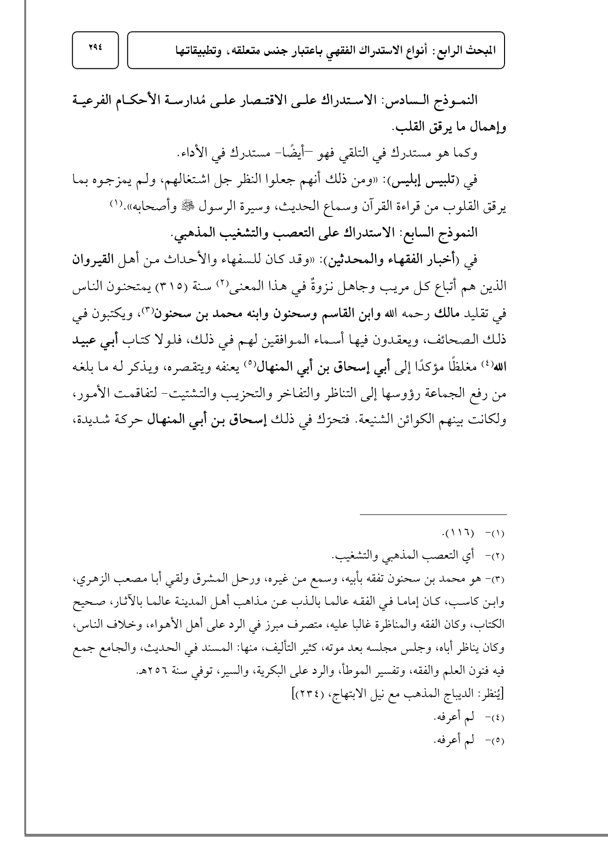 النموذج السادس: الاستدراك على الاقتصار على مُدارسة الأحكام الفرعية وإهمال ما يرقق القلب.