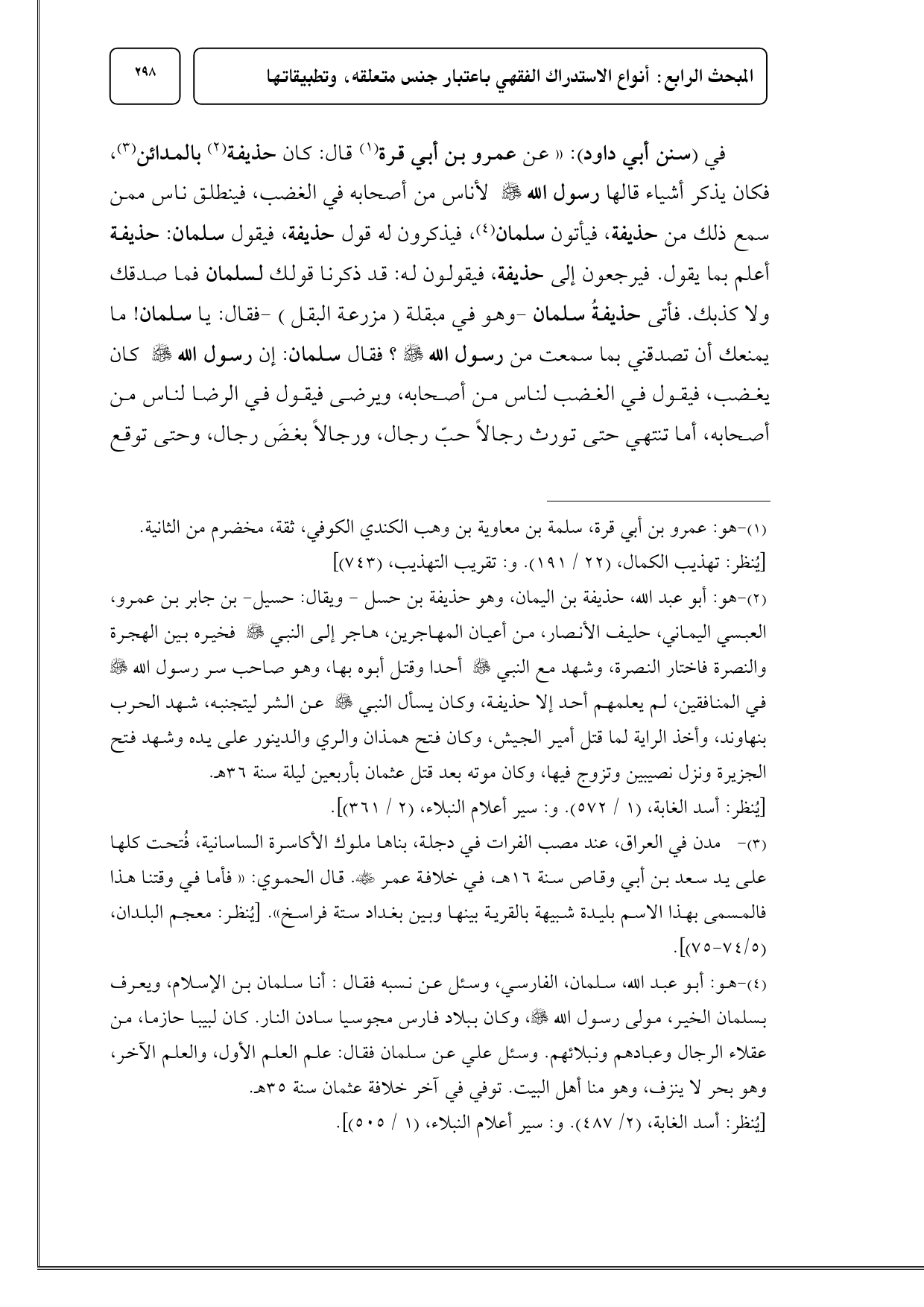 قال: كان حذيفة (¬2) بالمدائن (¬3)، فكان يذكر أشياء قالها رسول الله - صلى الله عليه وسلم - لأناس من أصحابه في الغضب، فينطلق ناس ممن سمع ذلك من حذيفة، فيأتون سلمان (¬4)،