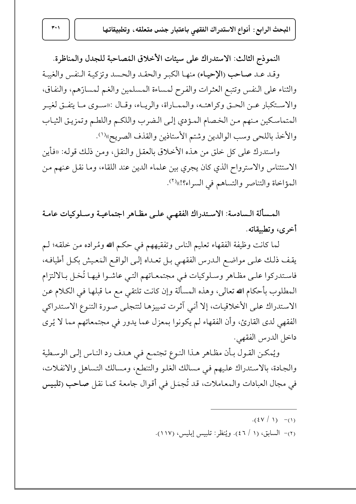 المسألة السادسة: الاستدراك الفقهي على مظاهر اجتماعية وسلوكيات عامة أخرى، وتطبيقاته.