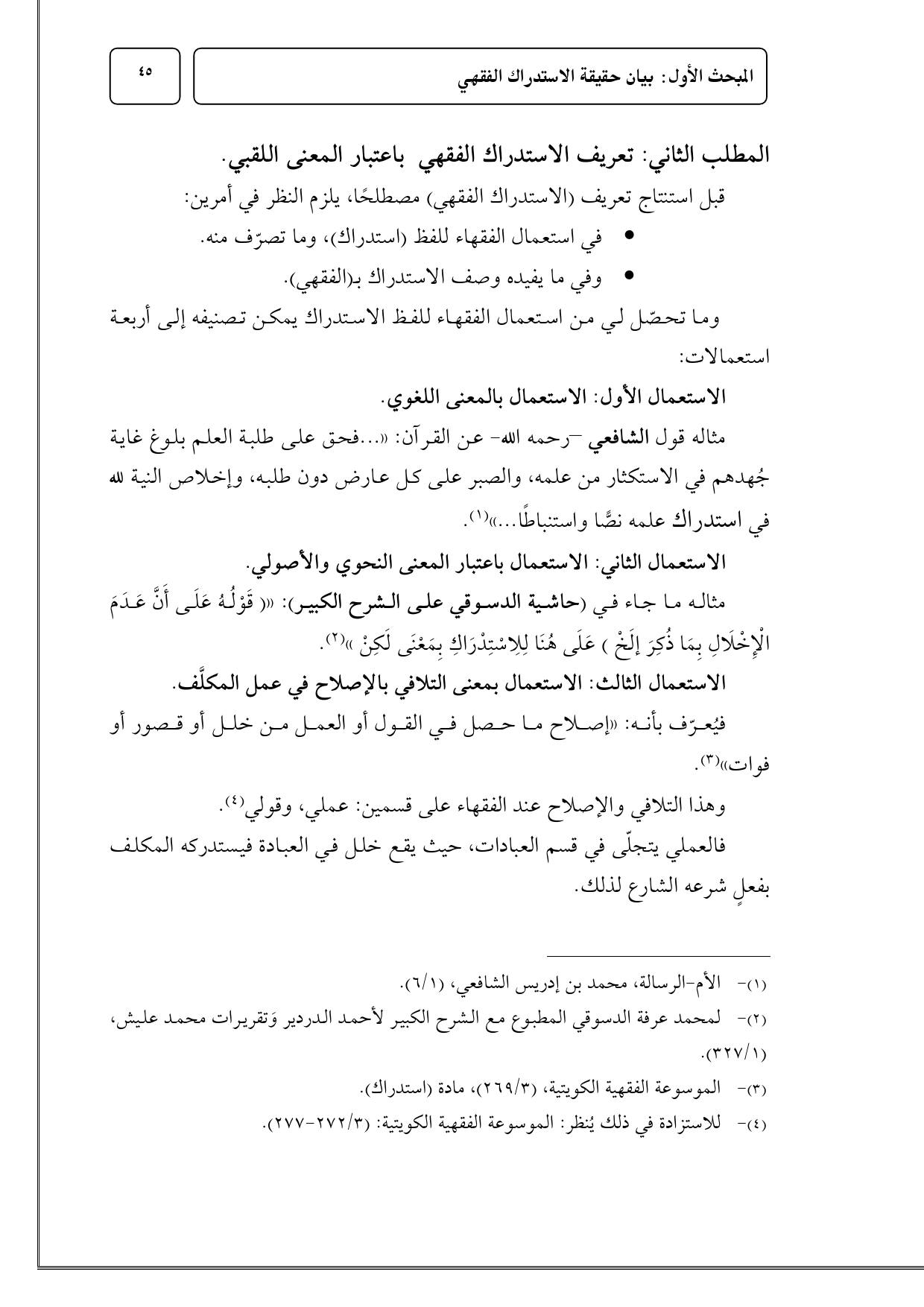 المطلب الثاني: تعريف الاستدراك الفقهي باعتبار المعنى اللقبي.