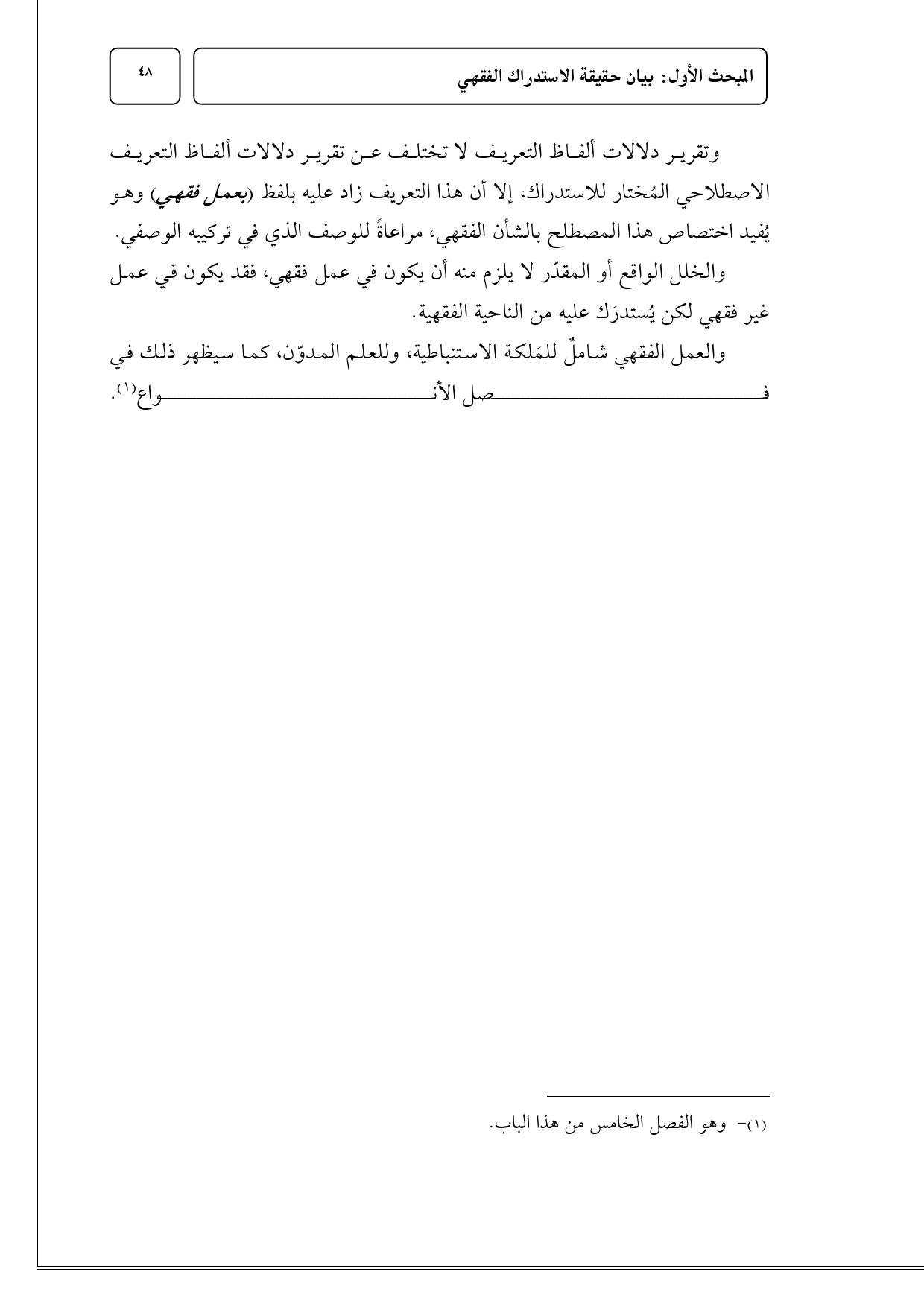 والعمل الفقهي شاملٌ للمَلكة الاستنباطية، وللعلم المدوّن، كما سيظهر ذلك في فصل الأنواع (¬1).