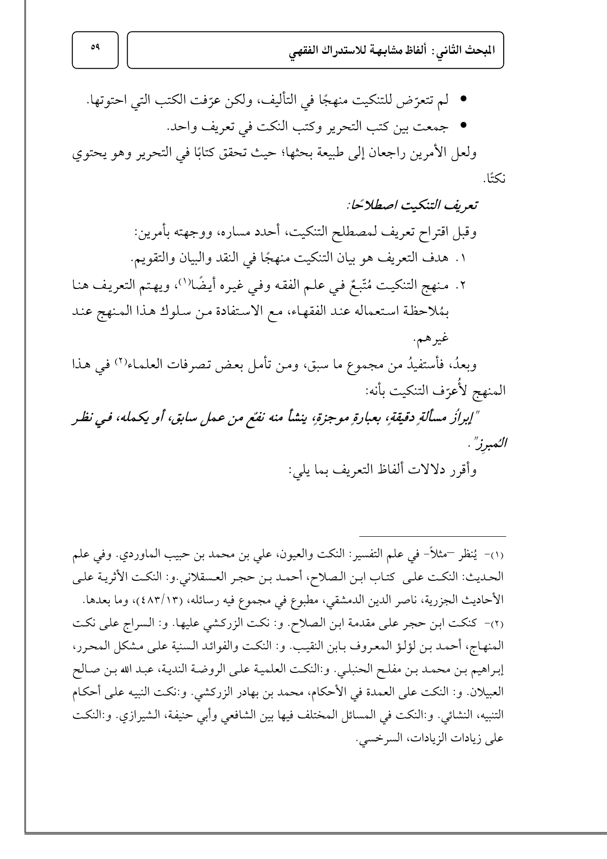 2 - منهج التنكيت مُتّبعٌ في علم الفقه وفي غيره أيضًا (¬1)، ويهتم التعريف هنا بمُلاحظة استعماله عند الفقهاء، مع الاستفادة من سلوك هذا المنهج عند غيرهم.
