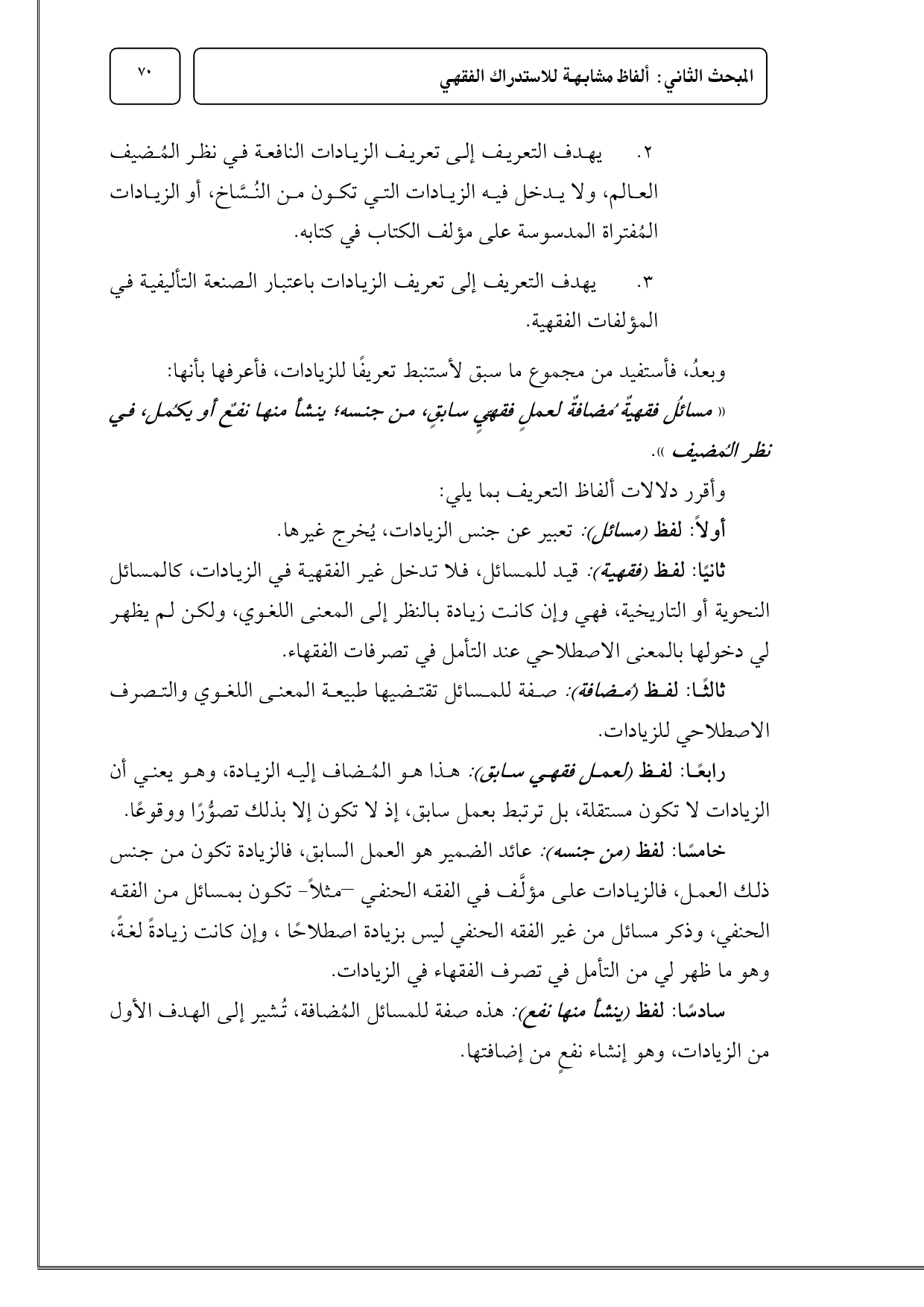 3 - يهدف التعريف إلى تعريف الزيادات باعتبار الصنعة التأليفية في المؤلفات الفقهية.