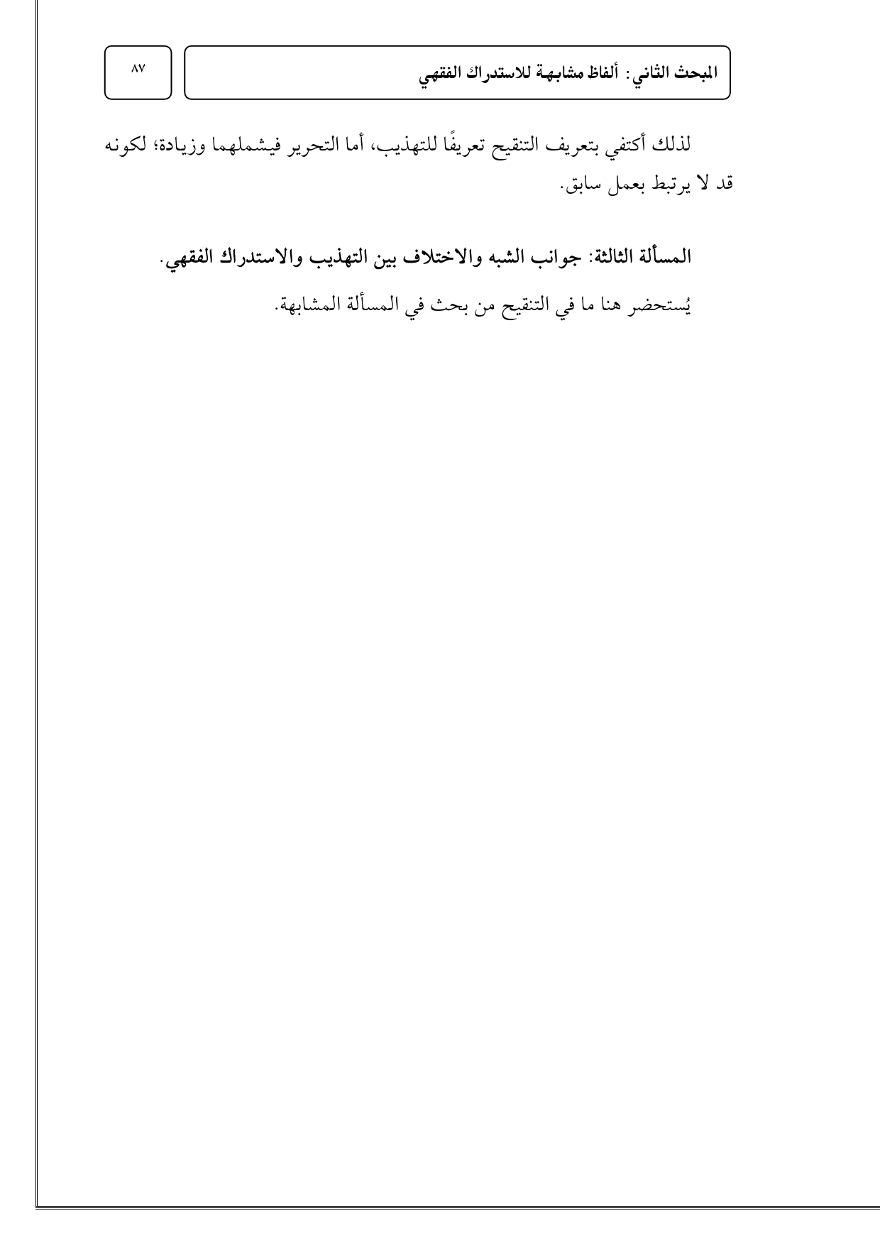 المسألة الثالثة: جوانب الشبه والاختلاف بين التهذيب والاستدراك الفقهي.